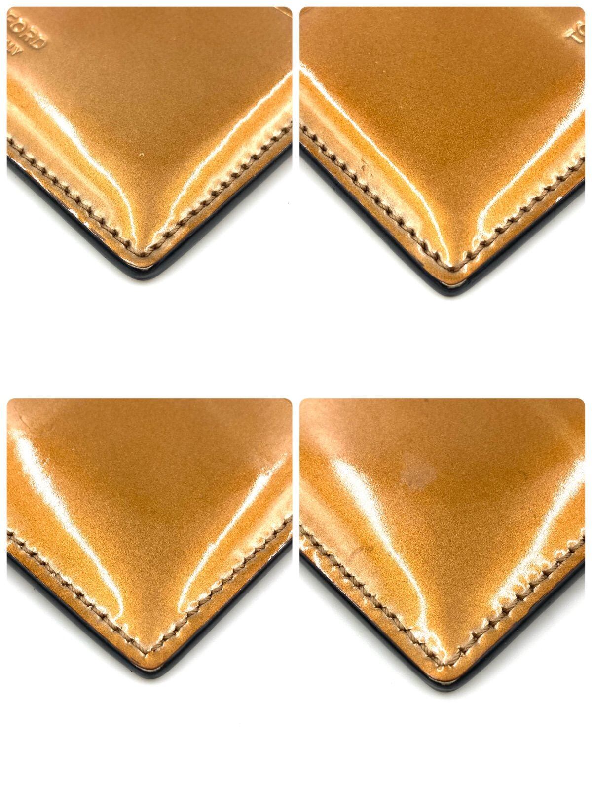 ■美品■TOM FORD トムフォード カードケース カード入れ ロゴ型押し エナメル パテントレザー メタリックゴールド イタリア製