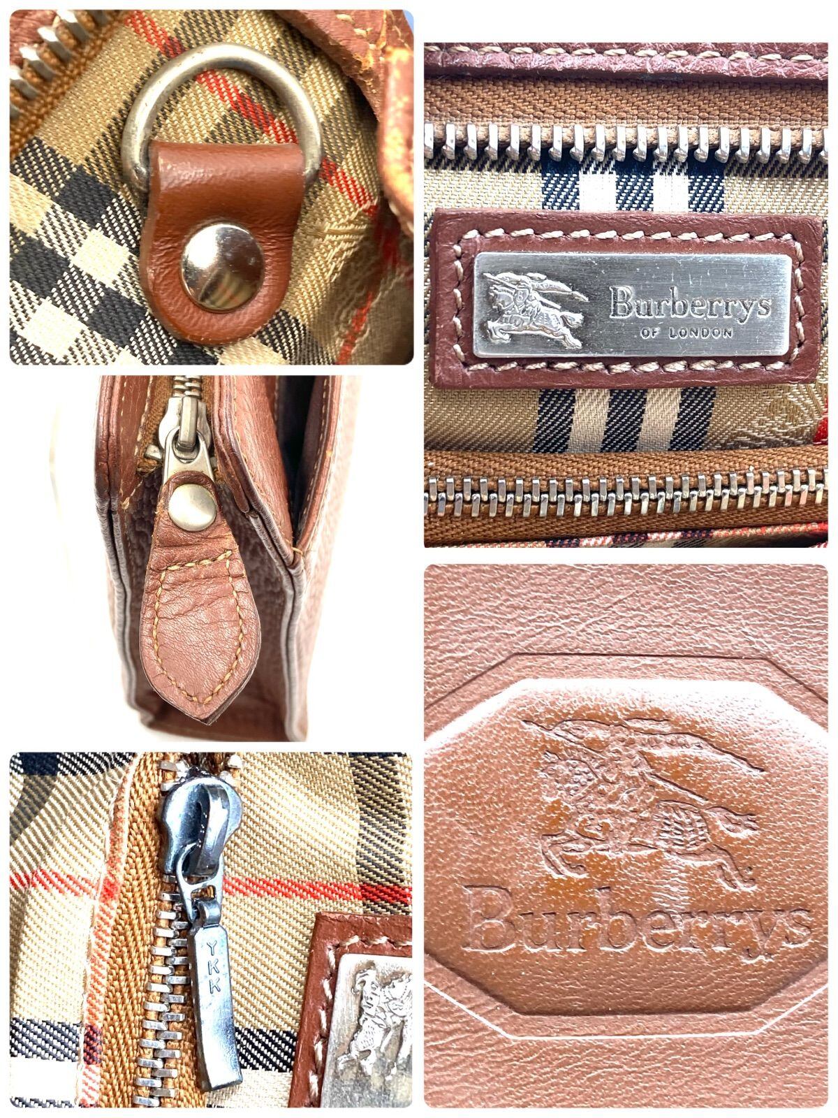 ■美品■Burberrys バーバリー クラッチバッグ セカンドバッグ ホースマークロゴ型押し ブラウン×内側ノバチェック+シャドーホース