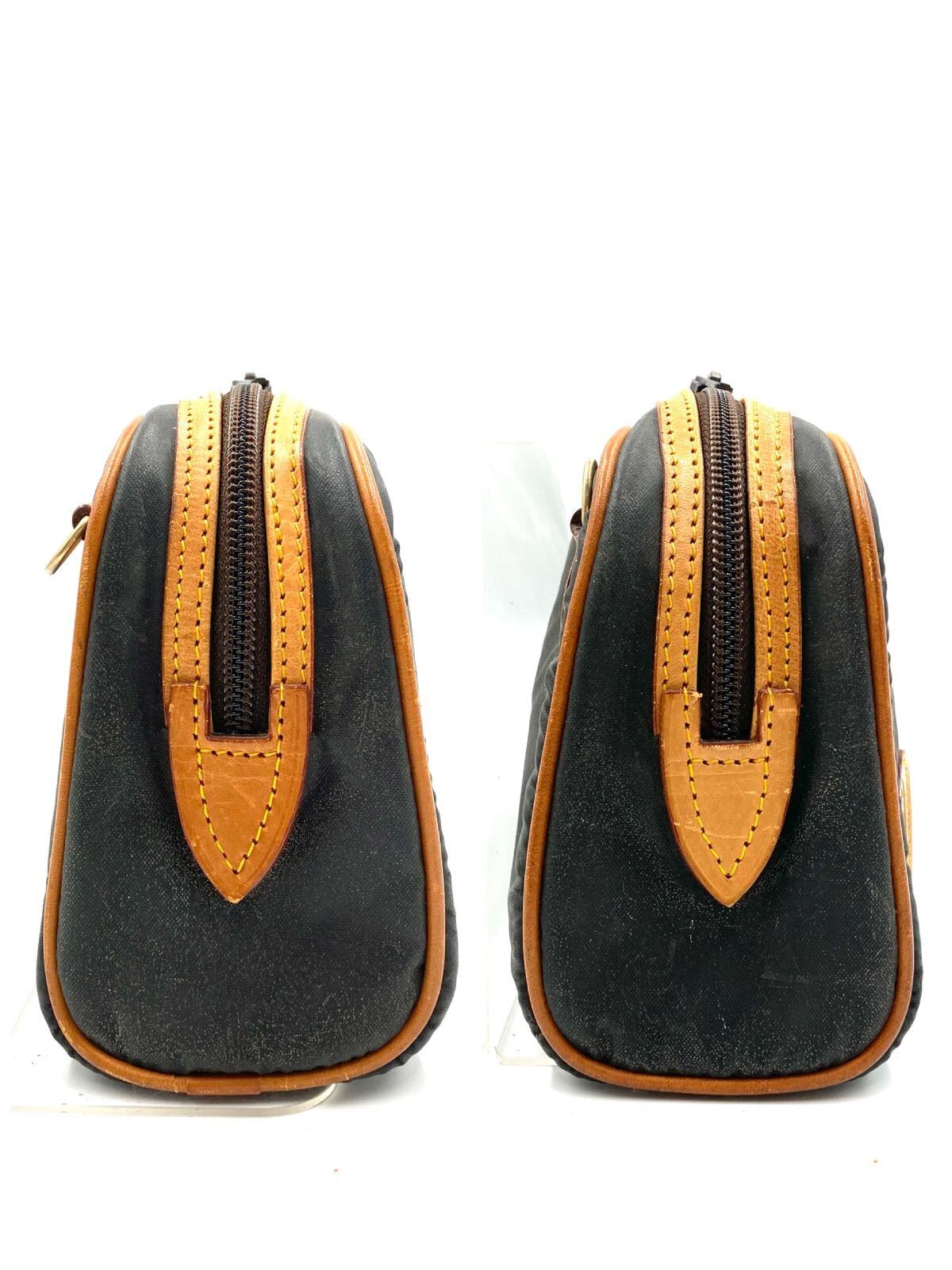 Hunting World ハンティングワールド ショルダーバッグ バチュークロス×レザー グリーン×ライトブラウン ロゴプレート イタリア製 タグあり