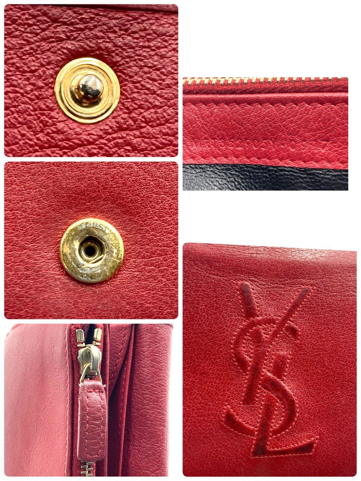 Yves saint Laurent イヴサンローラン YSLロゴ ロングウォレット 二つ折り長財布 レザー 本革 レッド ゴールド金具 刻印あり レディース