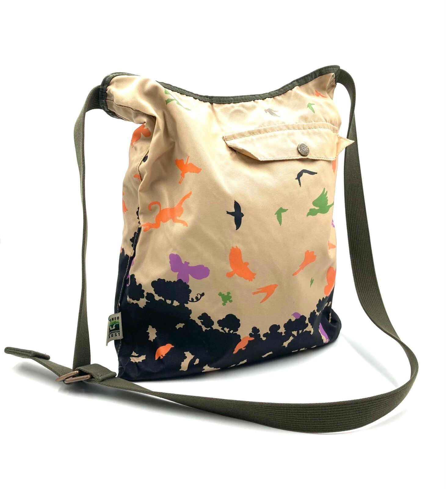 Hunting World ハンティングワールド リバーシブル ボルネオトートバッグ キャンバス グリーン(ビッグロゴ)orベージュ(ジャングル、アニマル柄) 斜めがけ クロスボディ