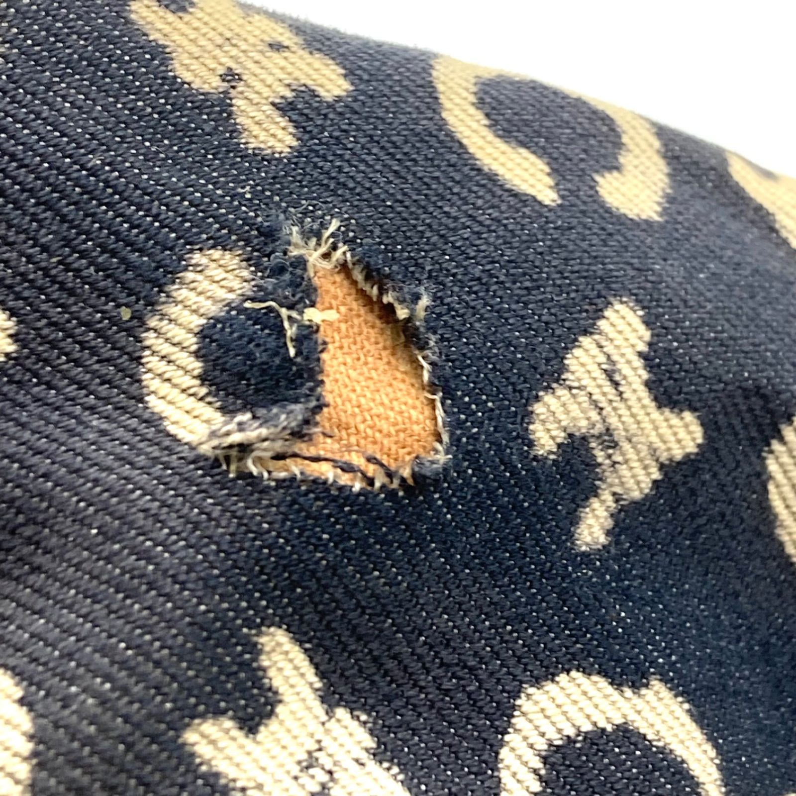 CELINE セリーヌ Cマカダム アクセサリーポーチ ハンドバッグ キャンバス×レザー ダークネイビーグレー イタリア製 刻印あり レディース