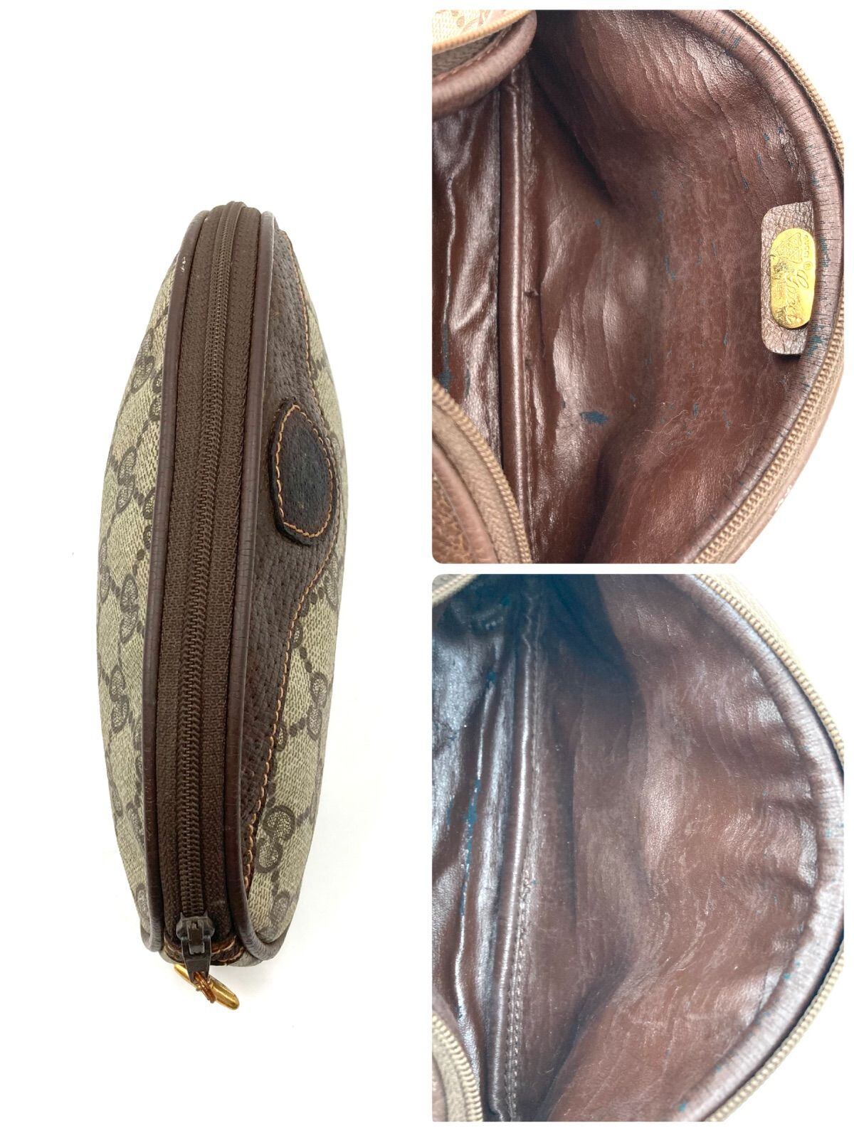 ■外観美品■GUCCI グッチ GGスプリーム ミニ ポーチ 楕円 インターロッキングG グレージュ×ブラウン コーティングキャンバス×レザー ゴールド金具 イタリア製 刻印あり 039・922・0368 オールドグッチ