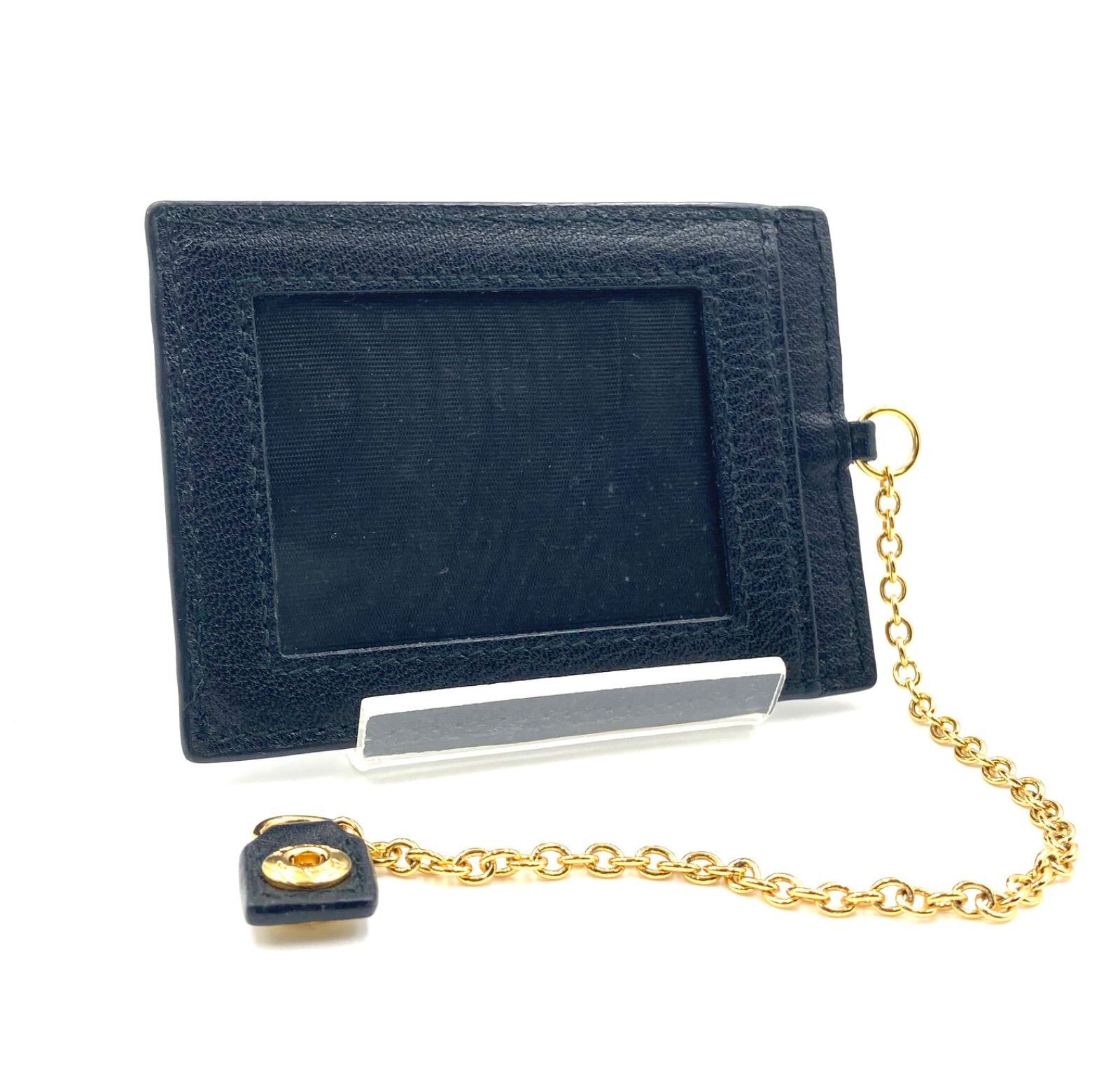 ■極美品■PRADA プラダ サフィアーノレザー 付属パスケース カードケース 定期入れ チェーン ブラック ゴールド金具