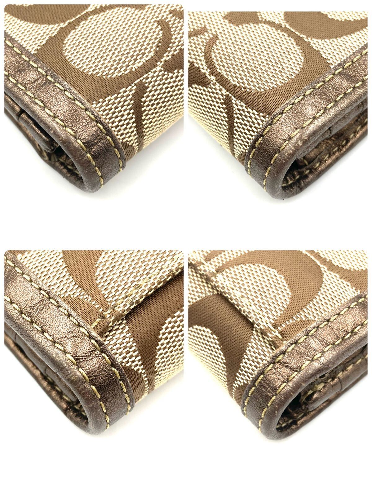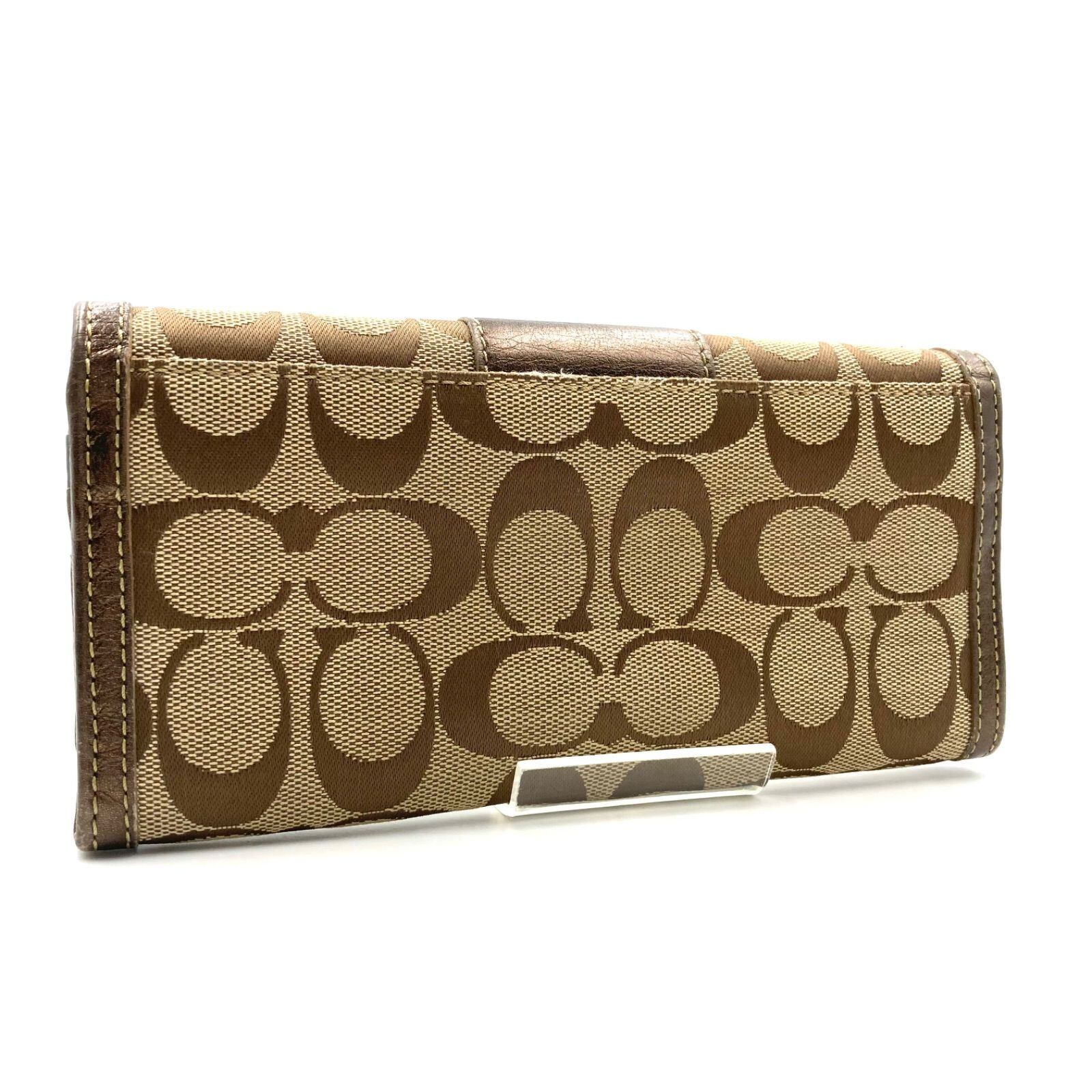 ■極美品■COACH コーチ シグネチャーキャンバス×レザー 長財布 ロングウォレット ヘリテージ ロゴ金具 ベージュ×ブラウン シルバー金具 レディース