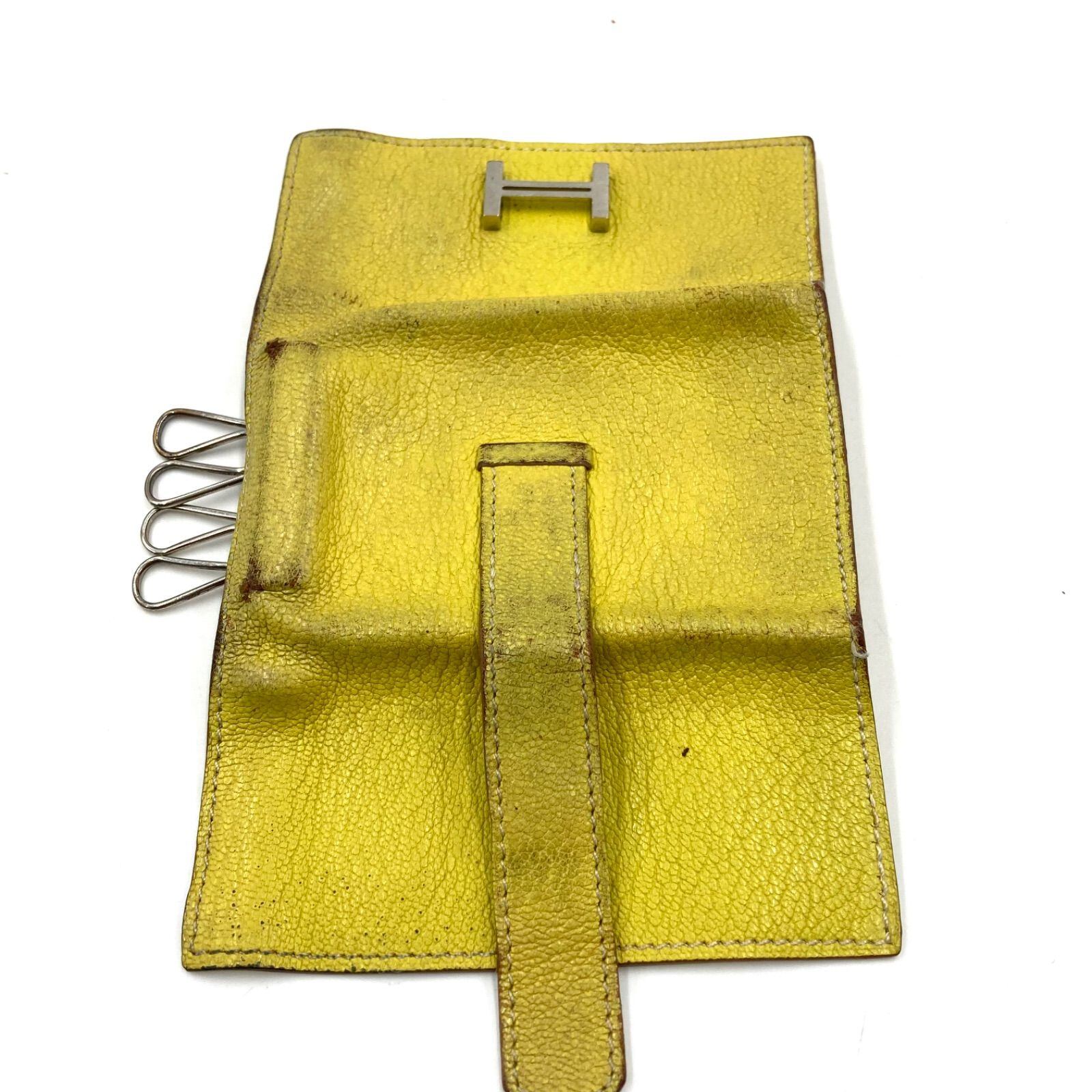 HERMES エルメス ベアン キーケース 4連 レザー 本革 イエロー シルバー金具 フランス製 刻印T 2015年製 レディース
