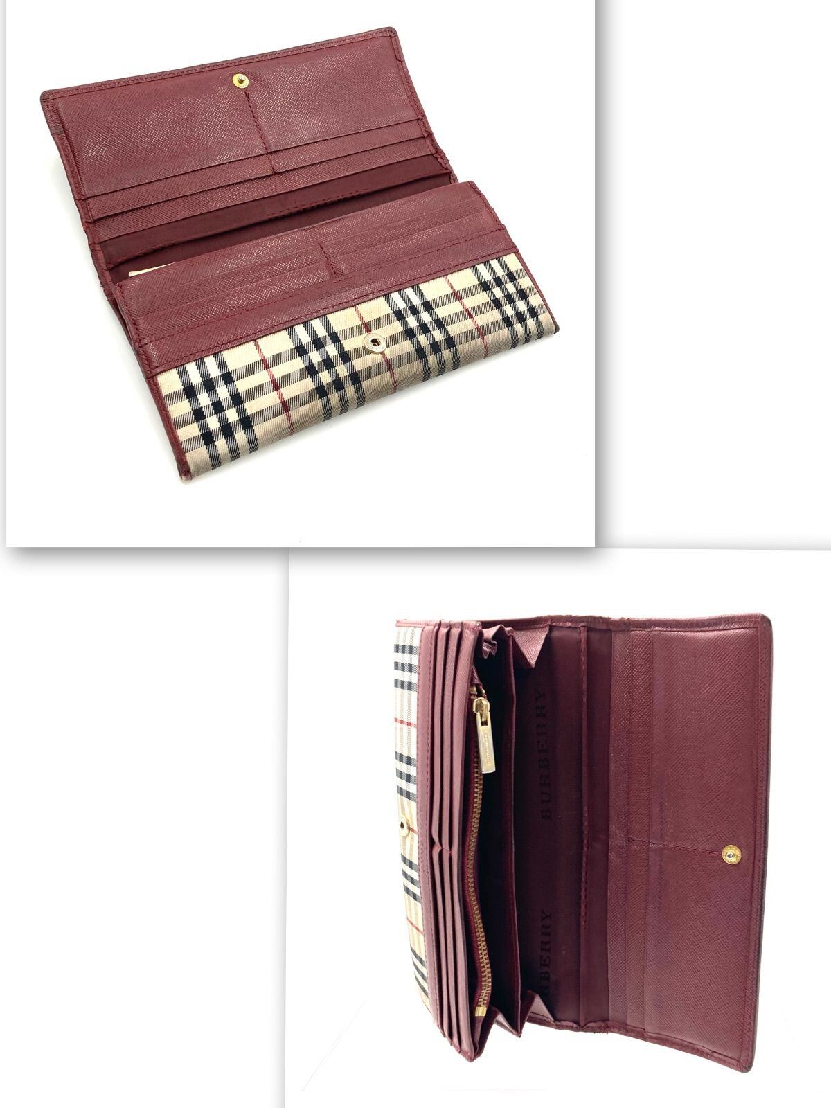 BURBERRY バーバリー ノバチェック 長財布 二つ折り キャンバス×レザー ベージュ×ボルドー ゴールド金具
