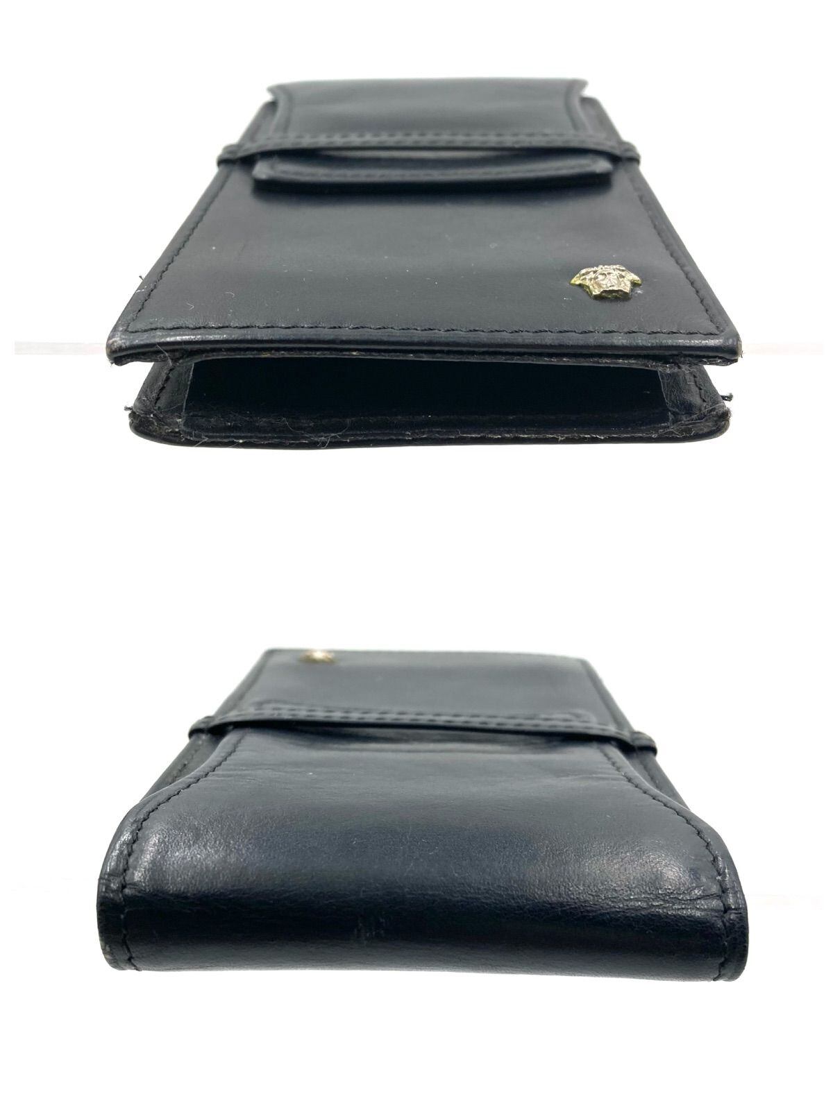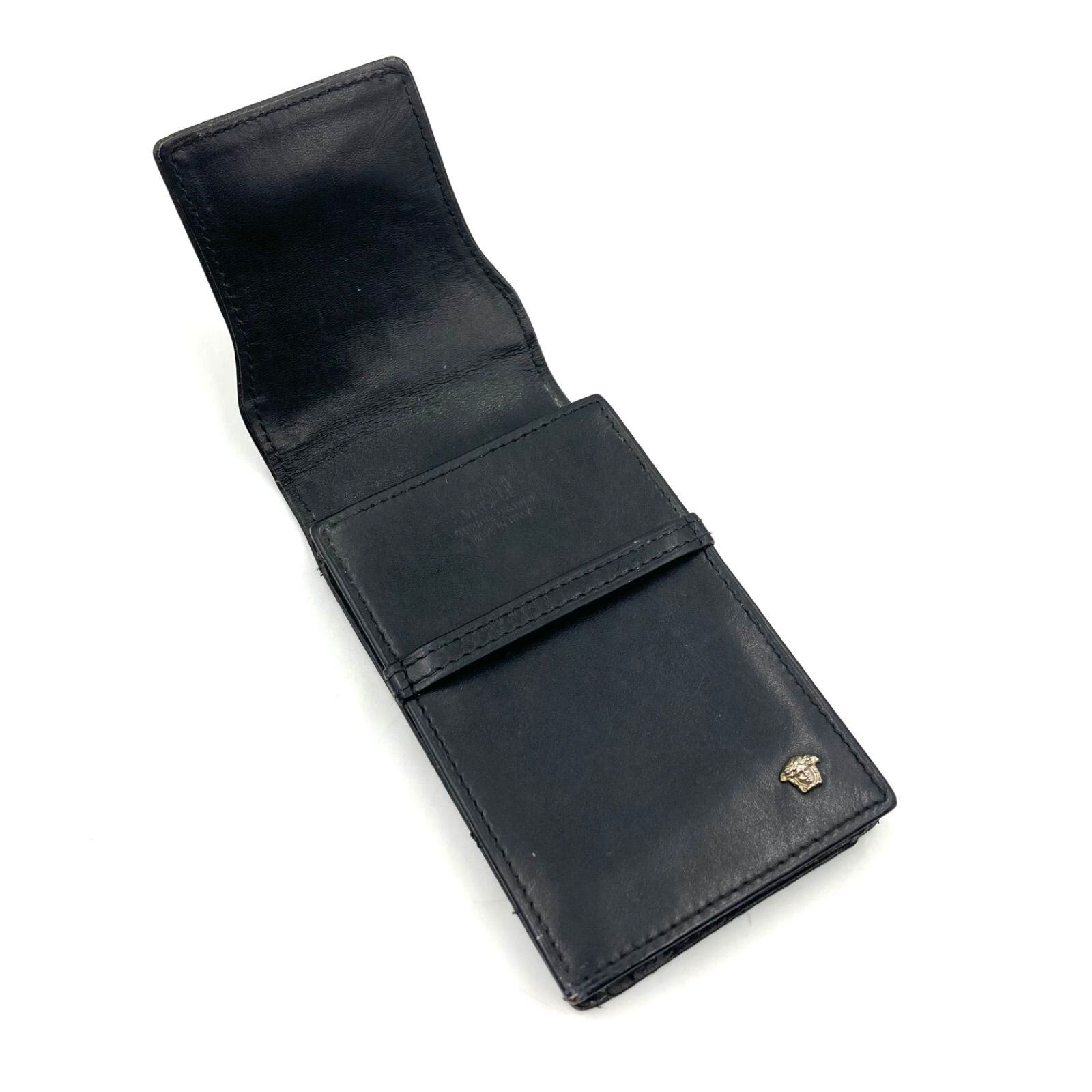 ■良品■ヴィンテージコレクションライン■GIANNI VERSACE ジャンニヴェルサーチ メデューサ金具付きマルチケース ミニポーチ シガーケース レザー ブラック イタリア製