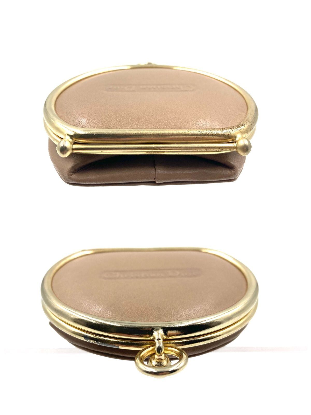 ■良品■Christian Dior クリスチャンディオール がま口コインケース 小銭入れ マイクロサイズ レザー ダークベージュ×ゴールド金具 スペイン製