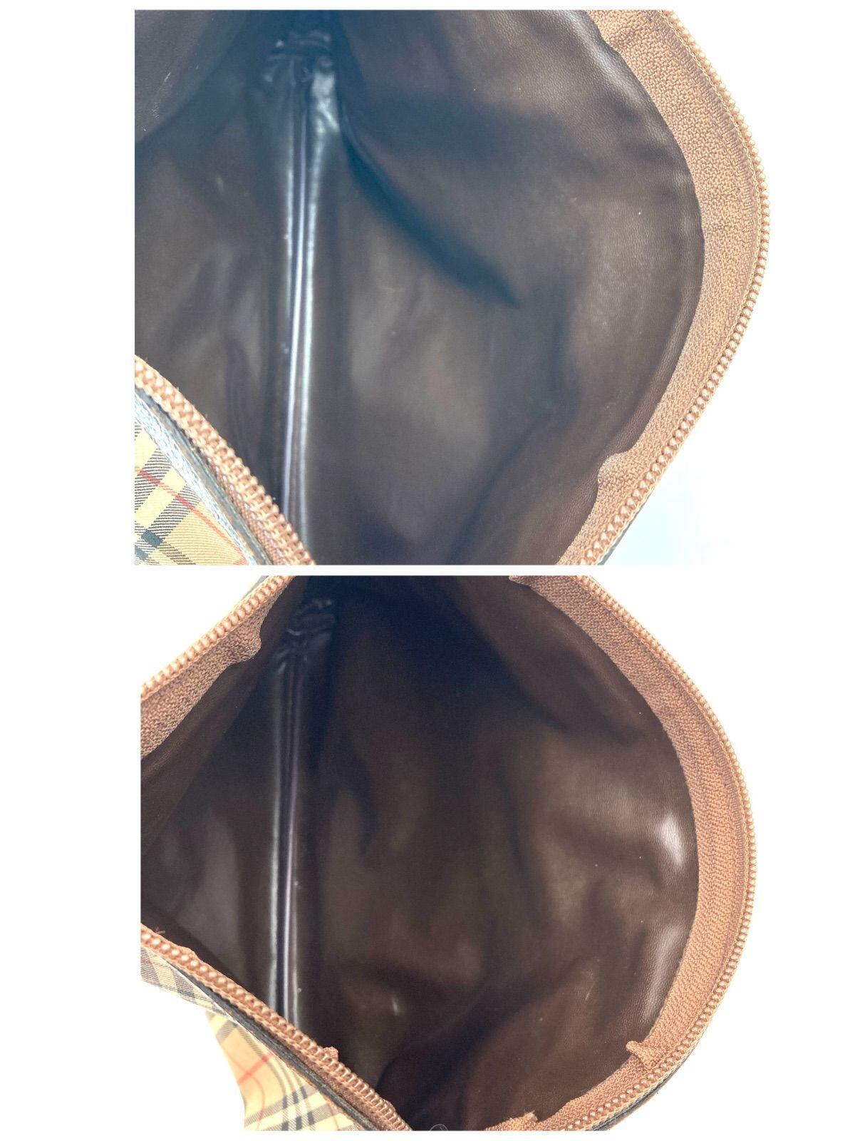 Burberrys バーバリー ノバチェック+シャドーホース ポーチ ミニクラッチバッグ キャンバス×レザー ベージュ×ブラウン ロゴプレート