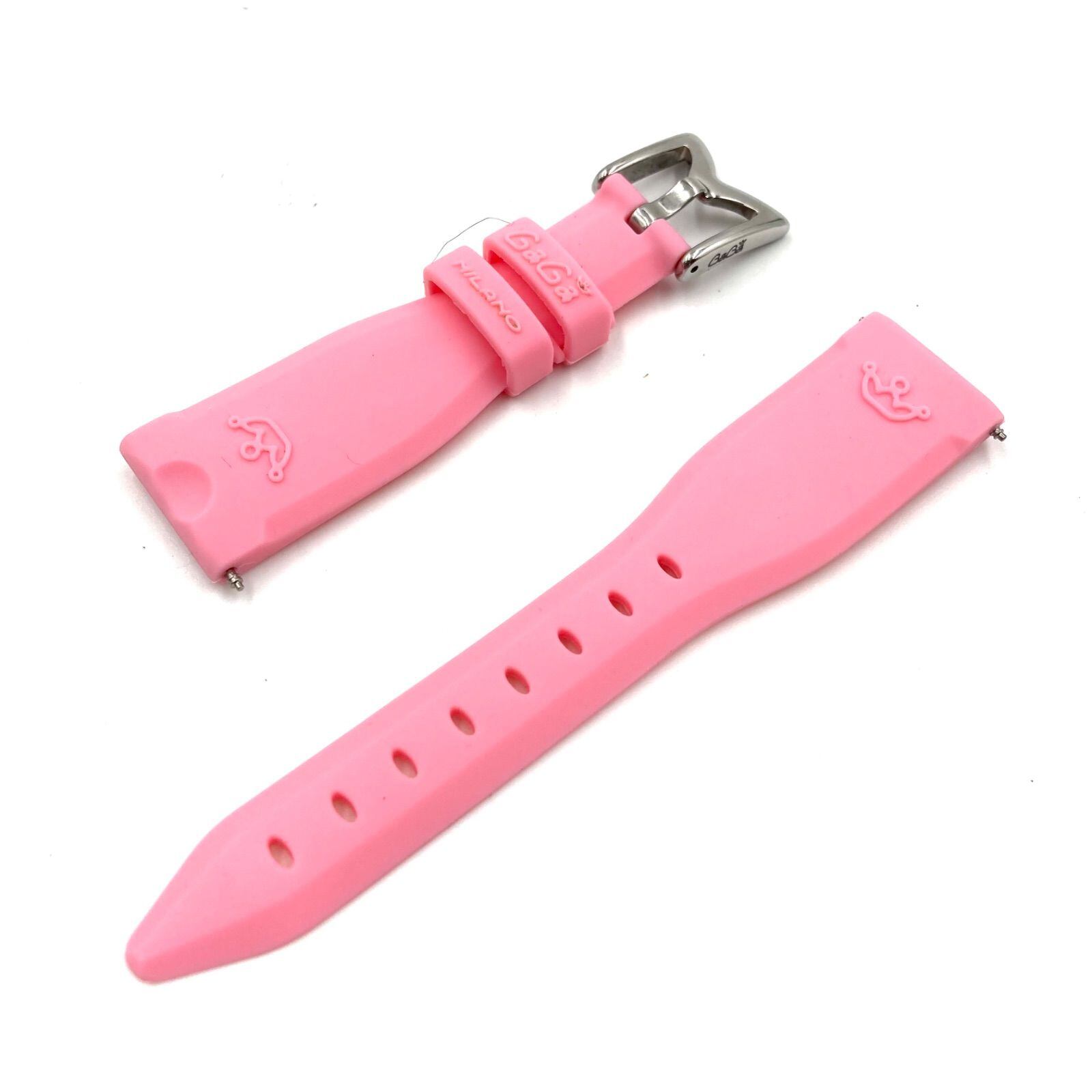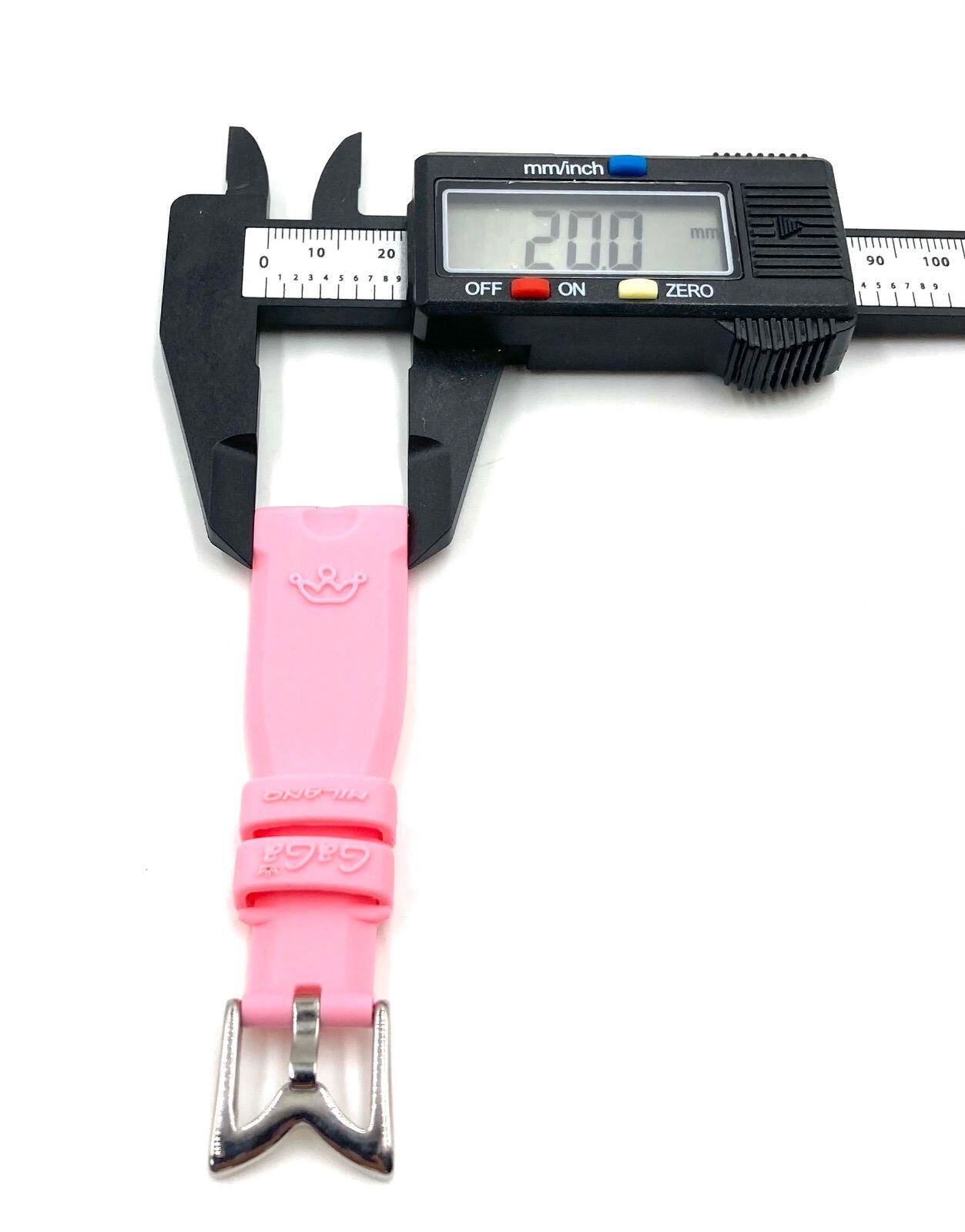 ■美品■GaGa MILANO ガガミラノ 腕時計替えベルト ラバー ピンク シルバー金具 尾錠側ラグ幅20.0mm 剣先側ラグ幅20.0mm レディース