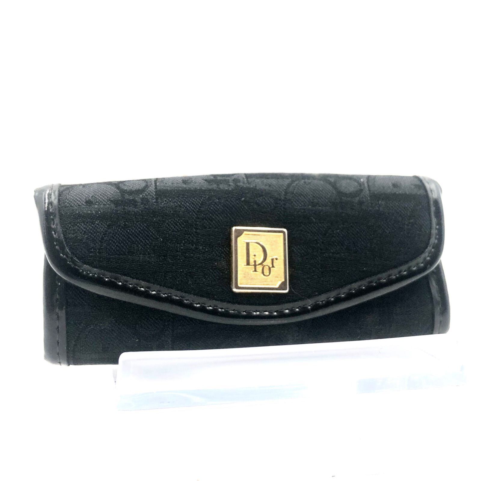 Christian Dior クリスチャンディオール トロッター ロゴプレート 4連キーケース キャンバス×レザー ブラック ゴールド金具 フランス製