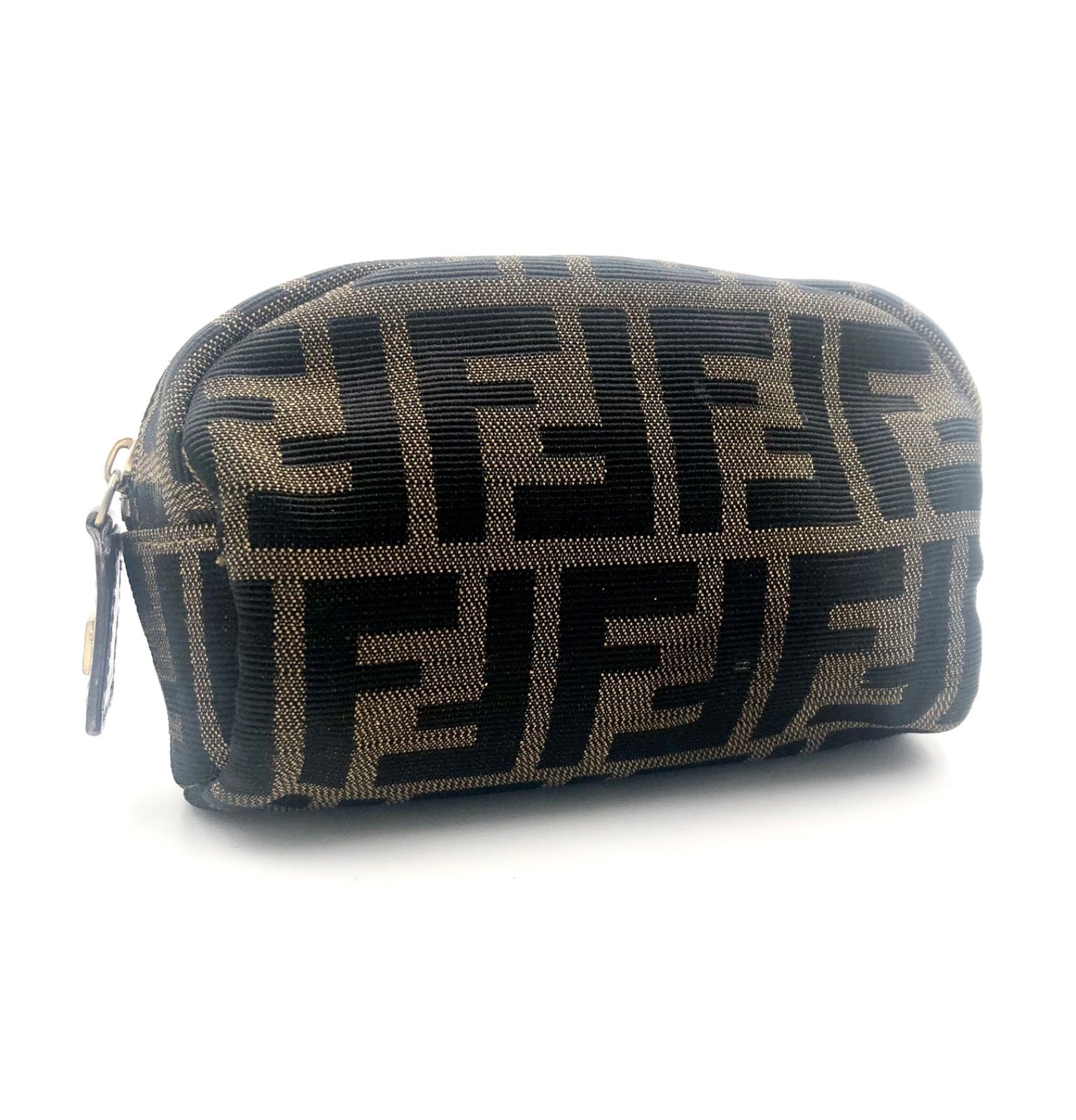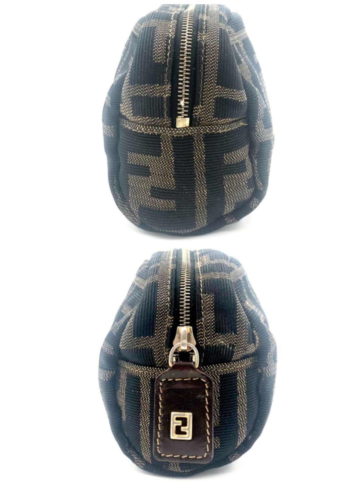 ■外観美品■FENDI フェンディ ズッカ ミニポーチ FF総柄 キャンバス ブラウン ゴールド金具 レディース
