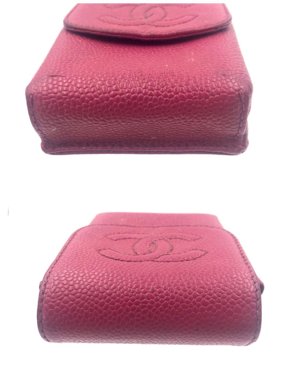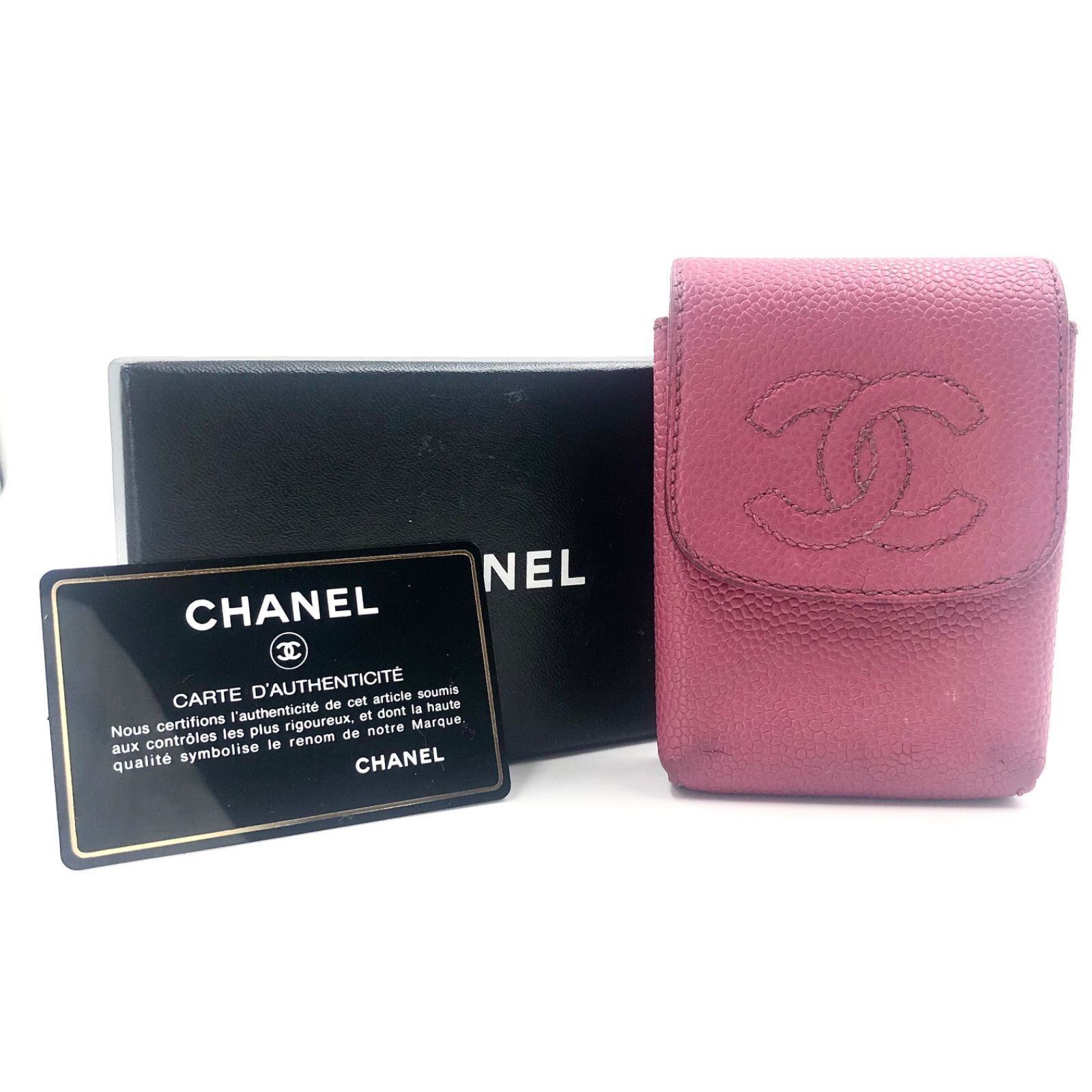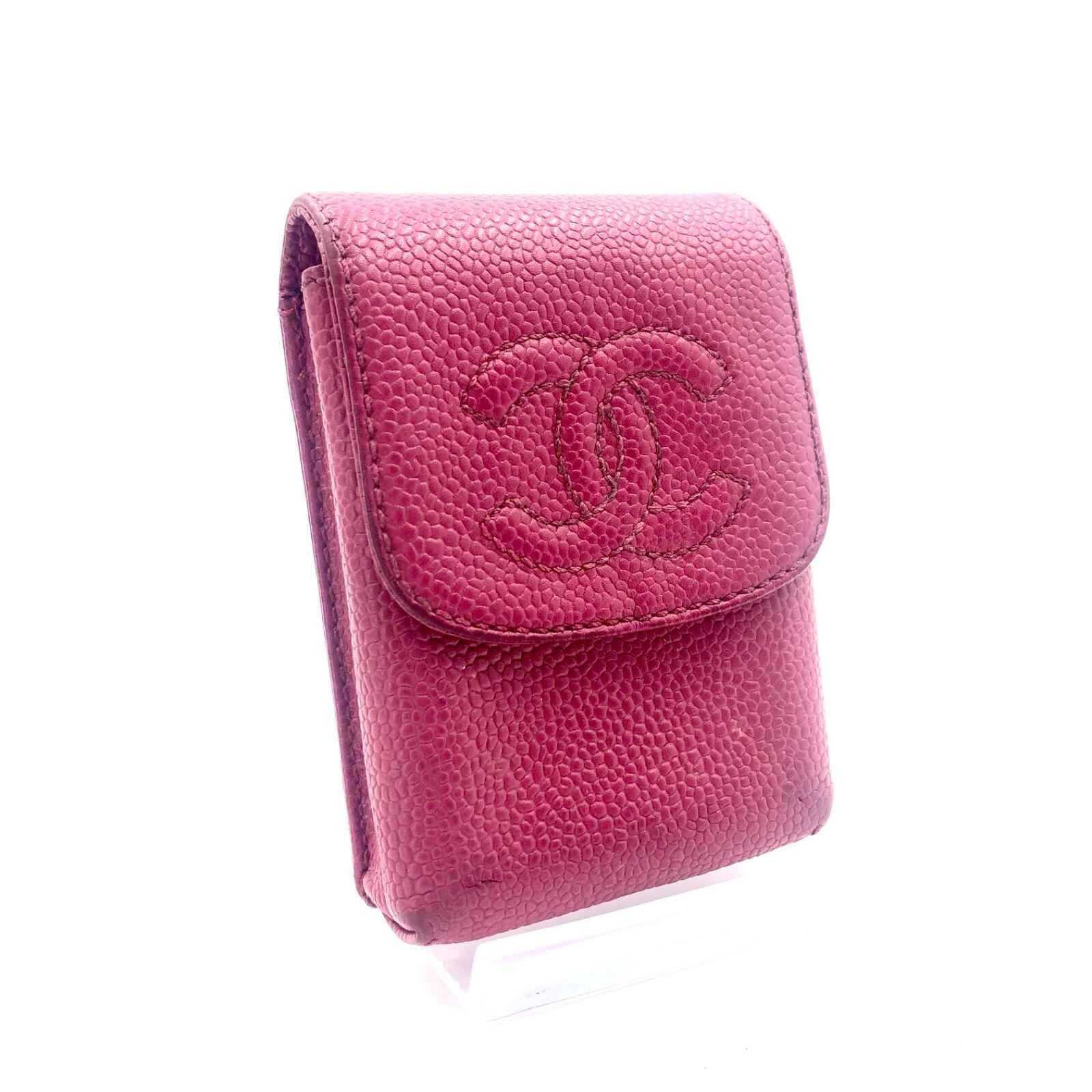 CHANEL シャネル ココマーク シガレットケース タバコポーチ キャビアスキン 本革 レザー ピンク ゴールド金具 シリアルシールあり ギャランティーカードあり 購入店(大丸京都)カード 箱付き レディース