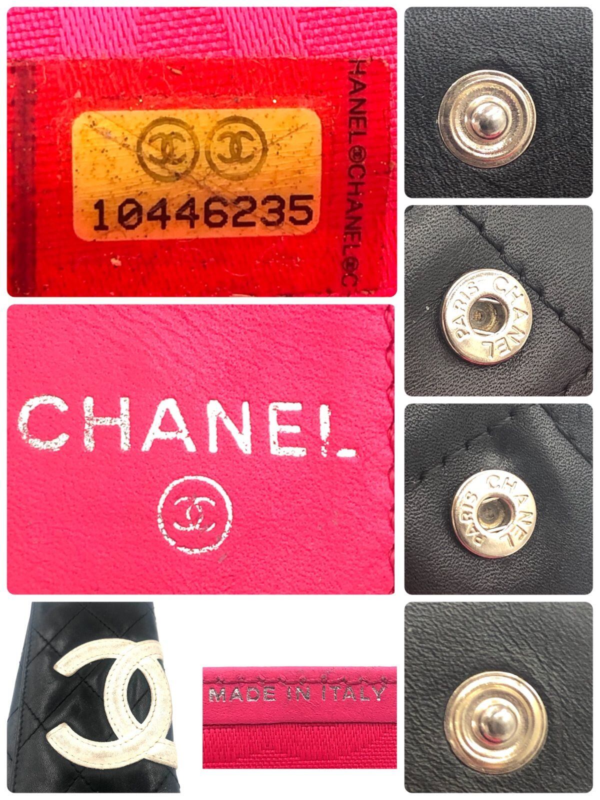 CHANEL シャネル カンボンライン 6連キーケース マトラッセ ココマーク レザー 本革 ブラック×ホワイト×内側ピンク シルバー金具 イタリア製 シリアルシールあり 10番代