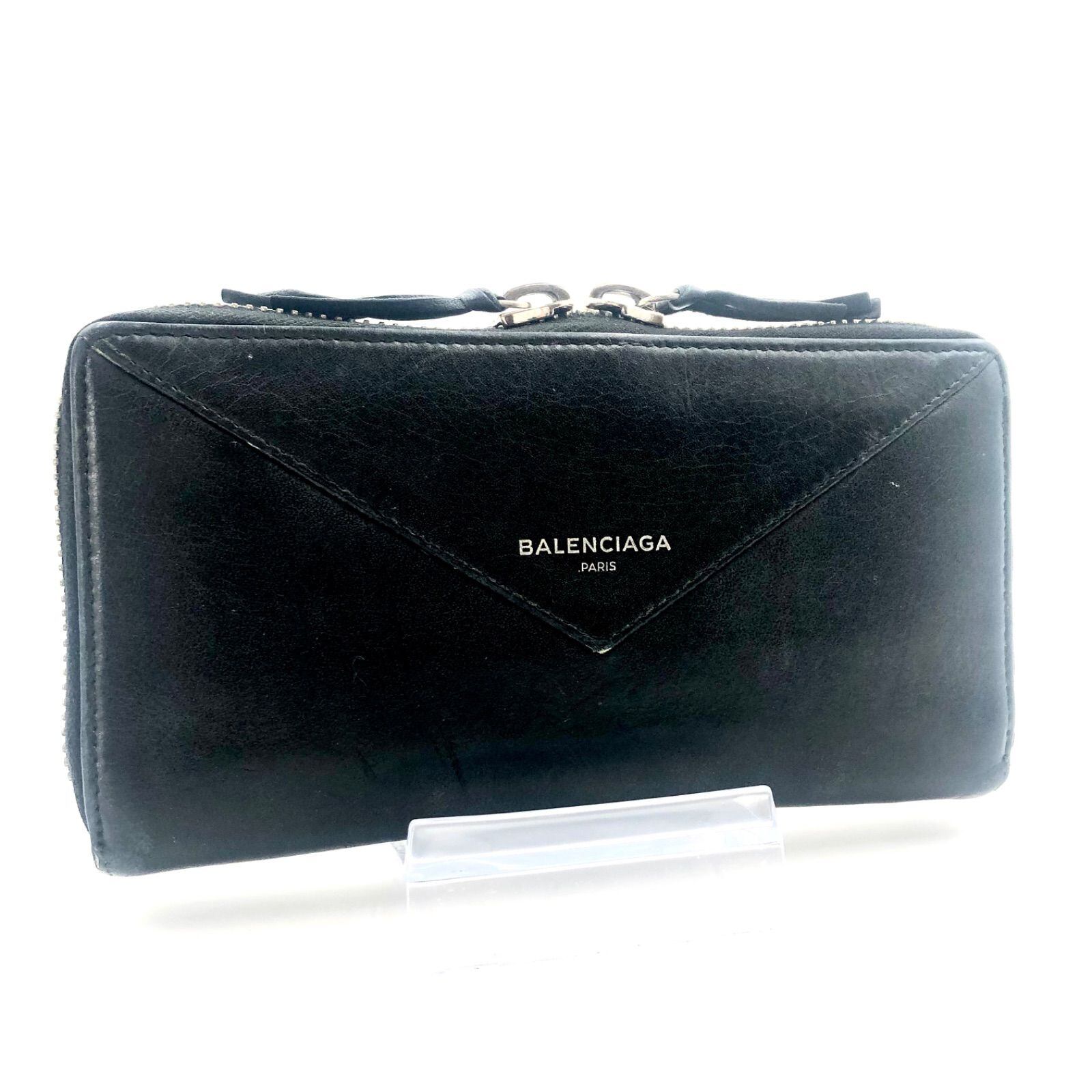 BALENCIAGA バレンシアガ ペーパーコンチネンタルジップアラウンド ラウンドファスナー 長財布 ロゴ ブラック シルバー金具 ダブルファスナー レザー 本革 イタリア製 刻印あり