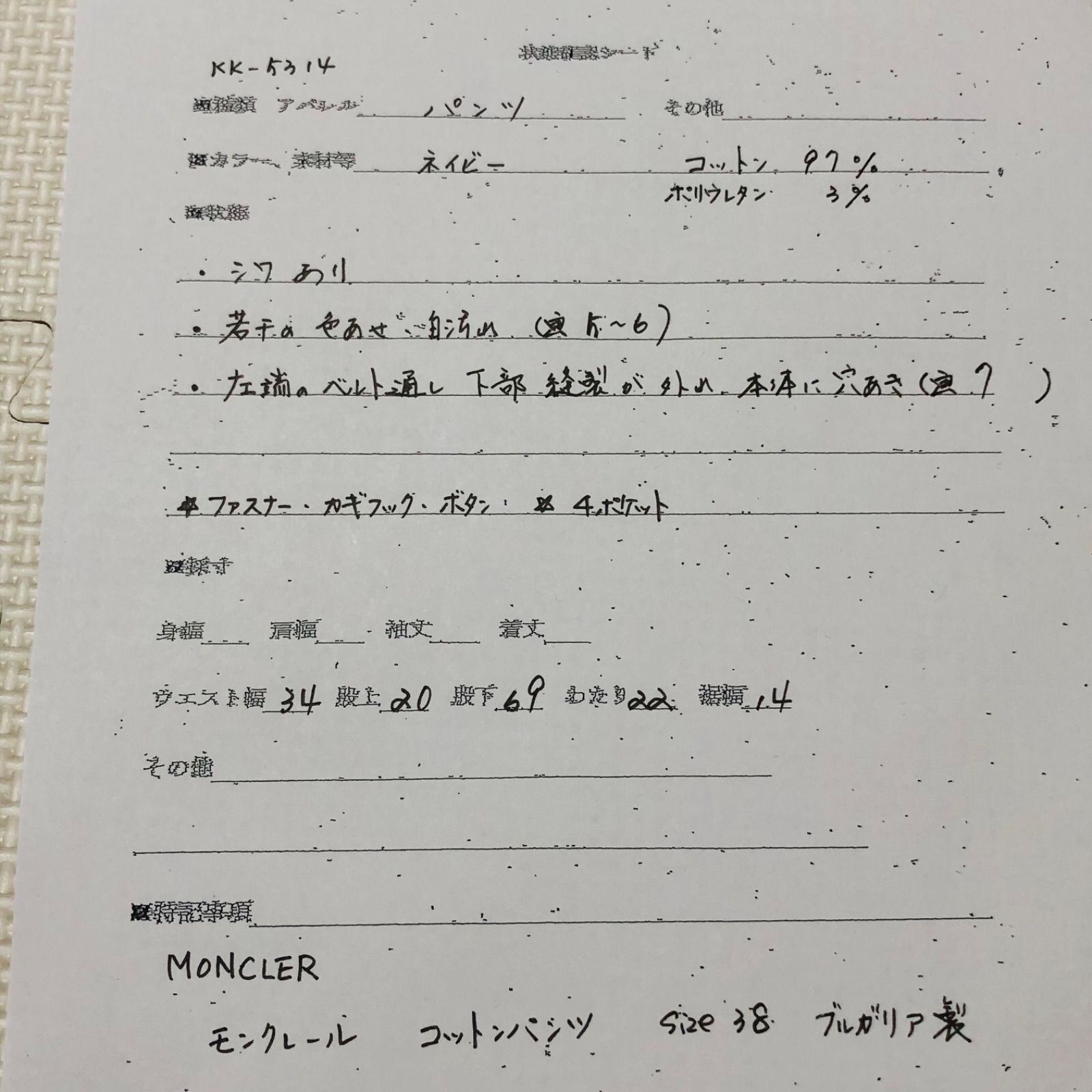素人採寸のため誤差はご容赦ください