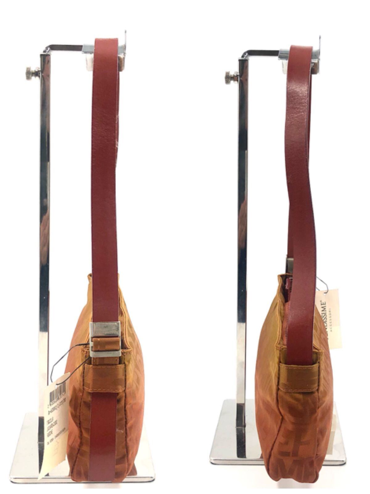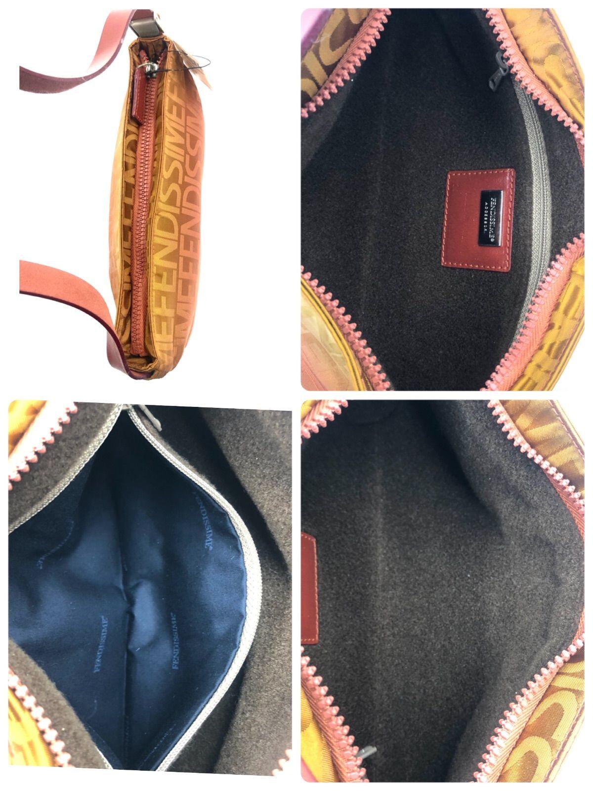■未使用タグ付き訳あり■FENDISSIME フェンディシメ ロゴ総柄 アクセサリーポーチ ハンドバック ミニバッグ キャンバス×レザー イタリア製 刻印あり ブラウン系 レディース