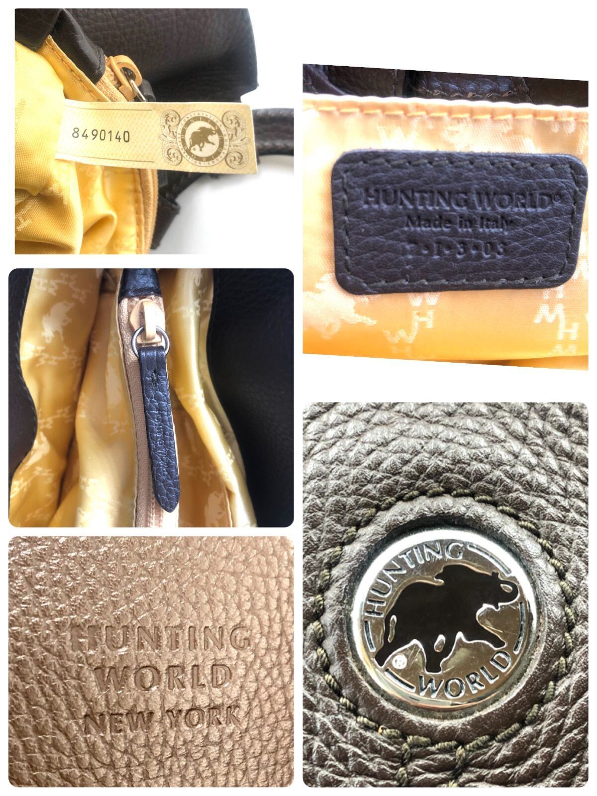 ■美品■Hunting World ハンティングワールド サークルハンドバック ロゴボタン レザー 本革 ダークブラウン イタリア製 刻印あり レディース