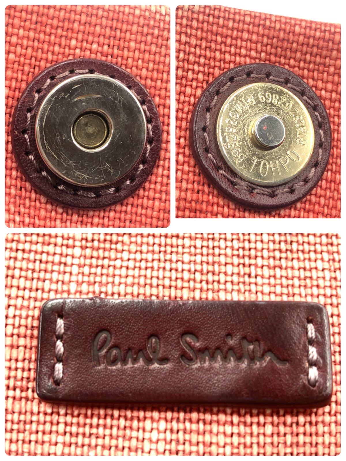 ■極美品■Paul Smith ポールスミス ワンショルダーバッグ トートバッグ ロゴプレート サーモンピンク×ブラウン キャンバス×レザー ゴールド金具