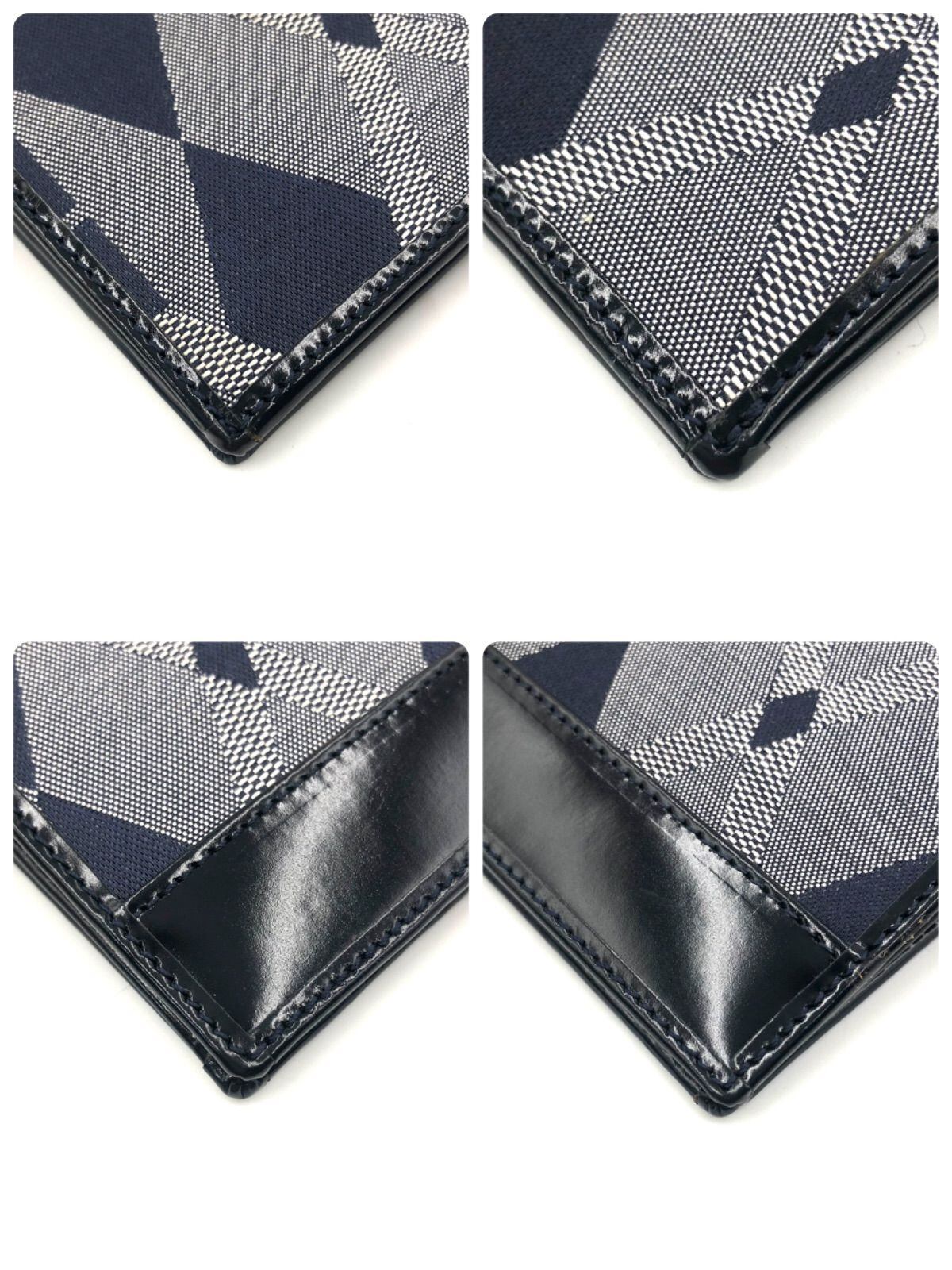 ■極美品■GIVENCHY ジバンシィ アーガイルチェック×ロゴ 長財布 二つ折り キャンバス×レザー グレー ゴールド金具 スペイン製 箱付き