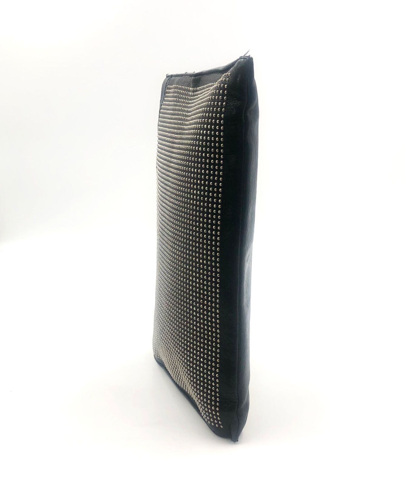 ■良品■稀少デザイン■SAINT LAUREN PARIS サンローランパリ マイクロスタッズ クラッチバック レザー 本革 ブラック シルバー金具 イタリア製 刻印あり GRZ397295・0218
