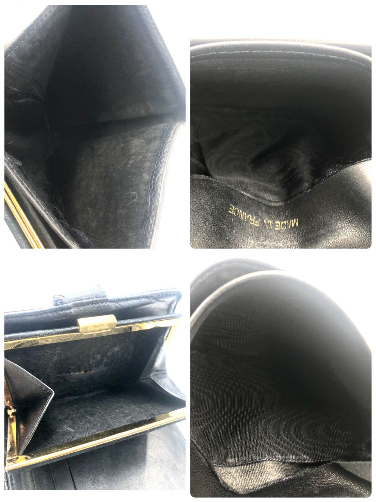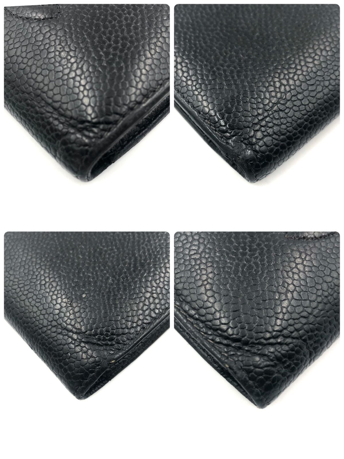 CHANEL シャネル キャビアスキン ココマーク がま口二つ折り財布 レザー 本革 ブラック ゴールド金具 フランス製 シリアルシールあり 7番代 レディース