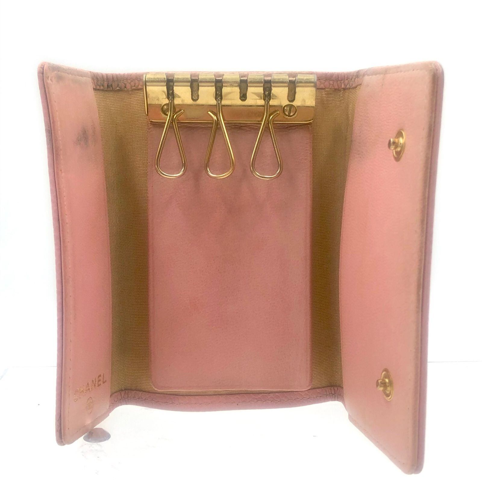 CHANEL シャネル キャビアスキン キーケース 6連(キー金具3つ欠品) ピンク ゴールド金具 ココマーク イタリア製 シリアルシールあり 9番代 レザー 本革 レディース
