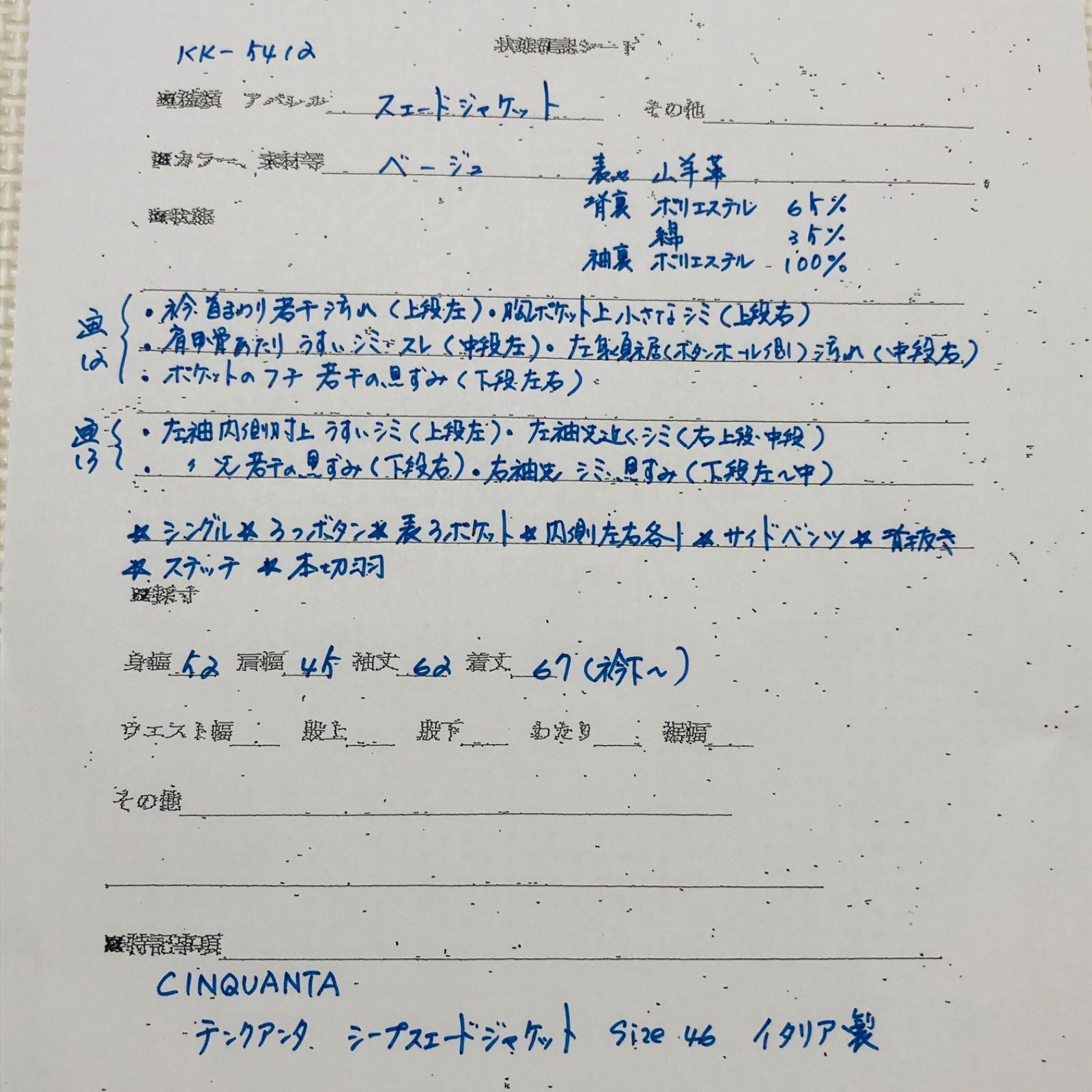 素人採寸のため誤差はご容赦ください