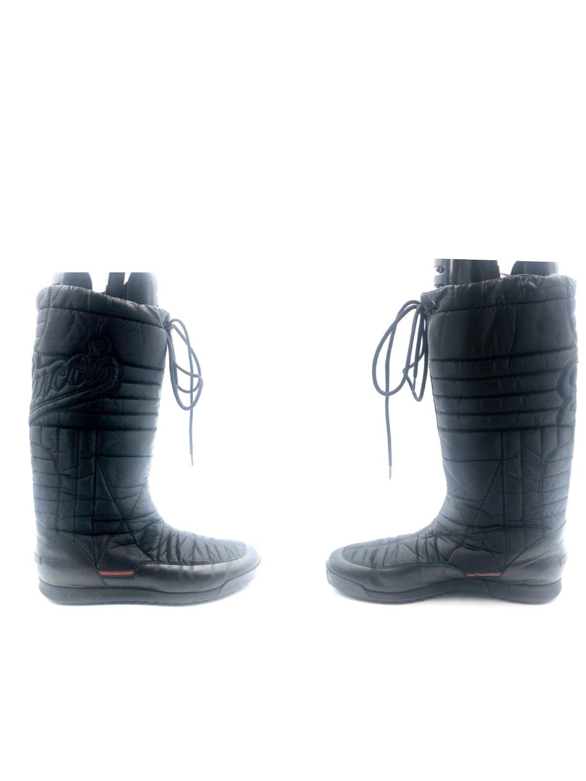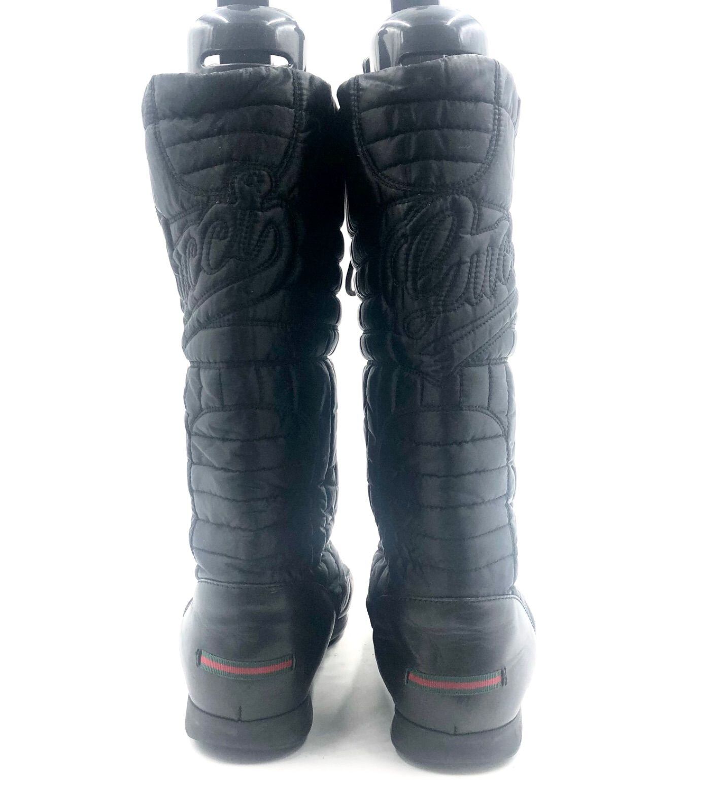 ■極美品■GUCCI グッチ シェリーライン スノーブーツ ミドルブーツ ブラック 筆記体ロゴ キルティングナイロン×レザー イタリア製 サイズ36.5C(23.5cm程度) レディース