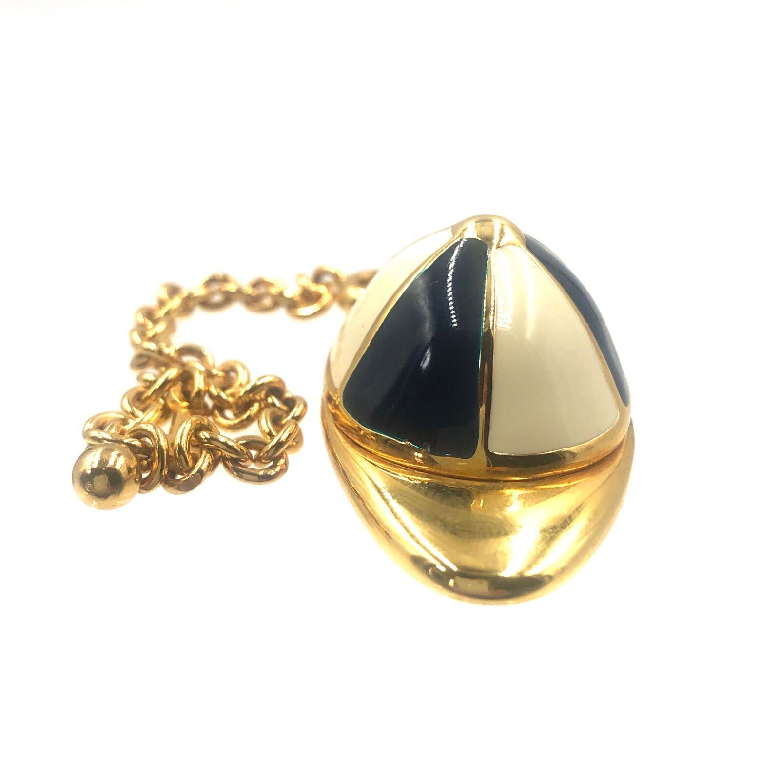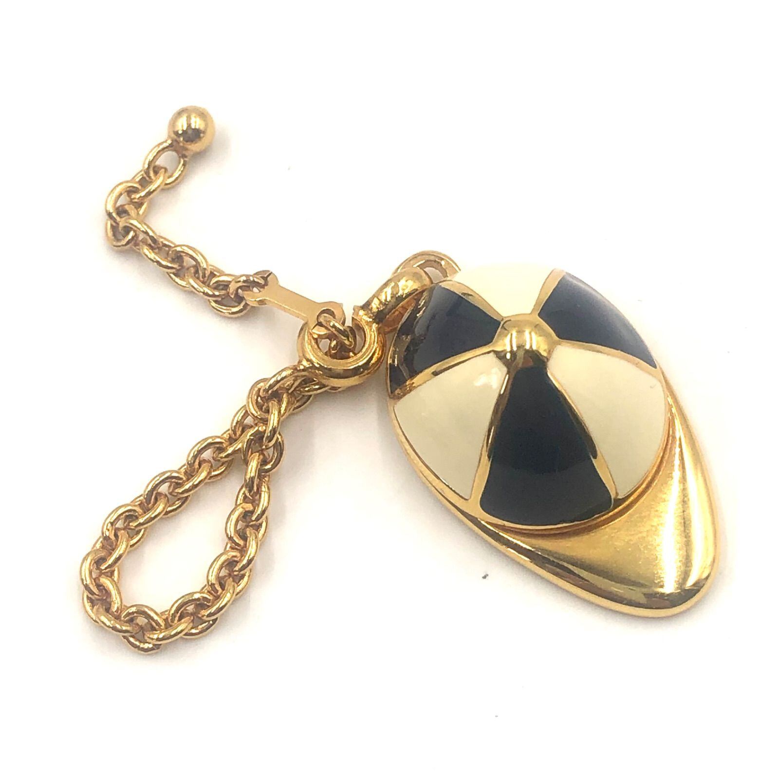 ■美品■GUCCI グッチ キャップ型チャーム キーホルダー ゴールド×ホワイト×ブラック イタリア製 箱付き