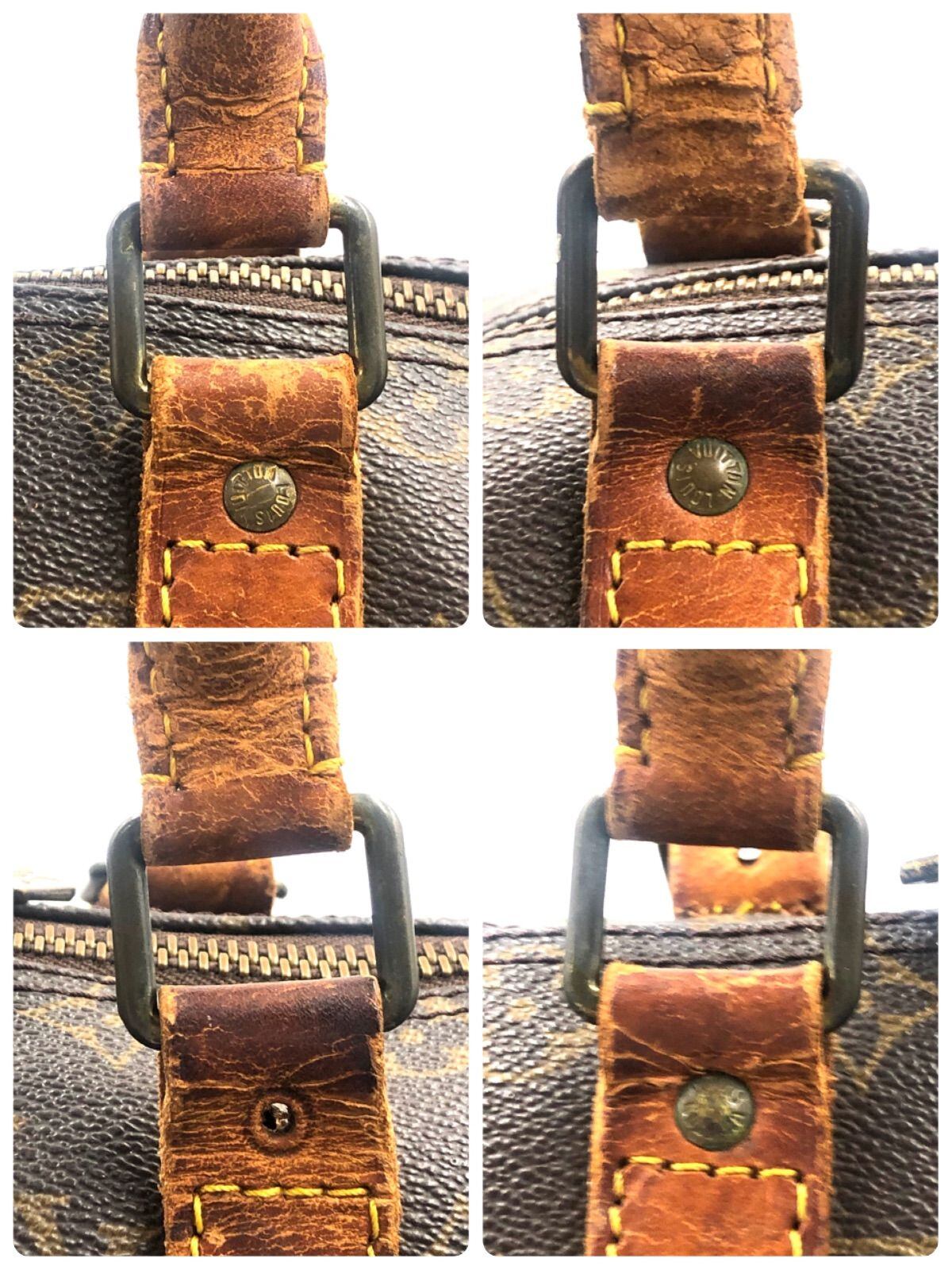 内部に4つあるハンドル根本ビス+レザーのうち、1つが取れ。製造刻印がある部位が取れているため、刻印確認不可能(提携の質屋で鑑定し真品だと確認済み)