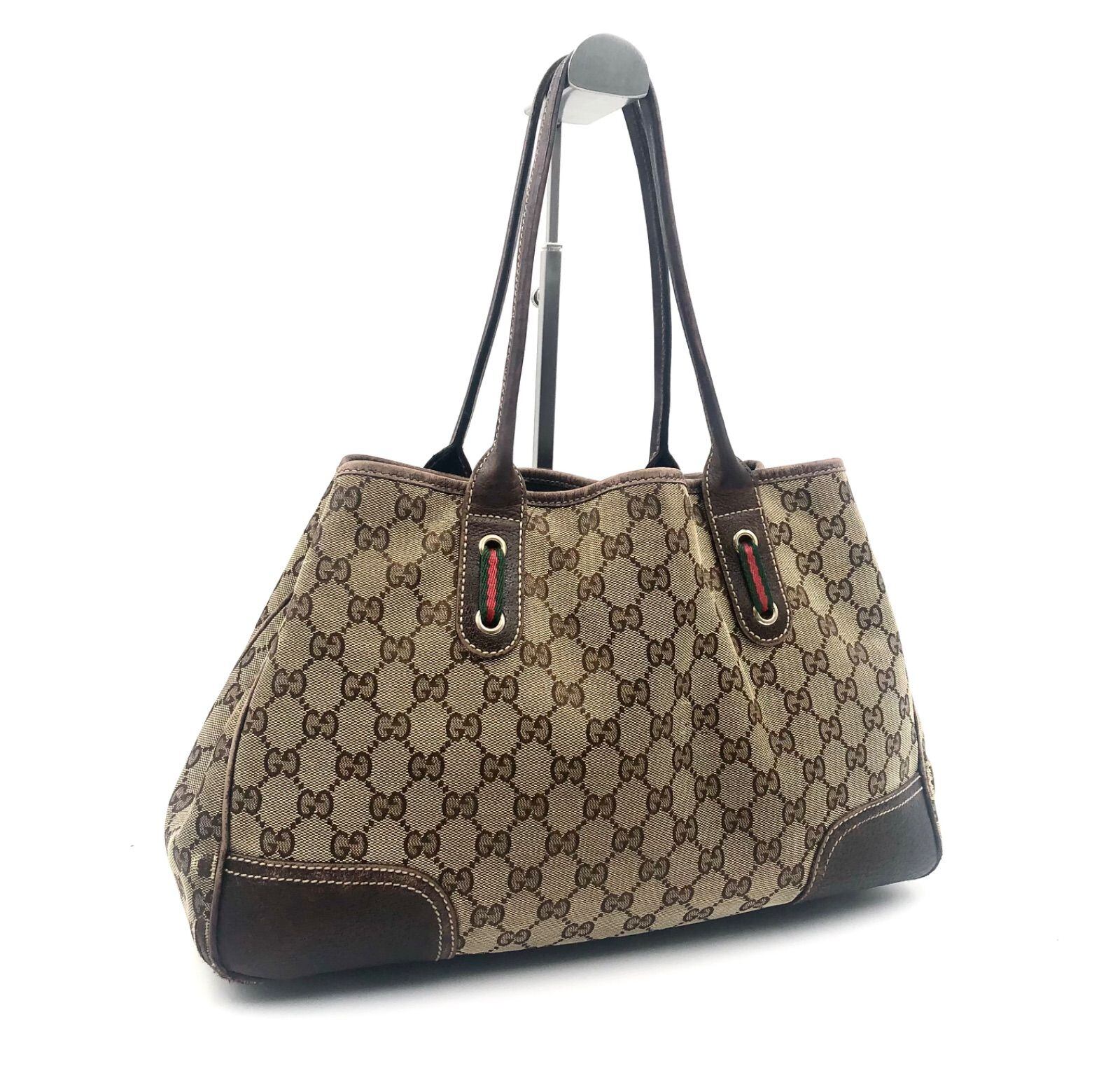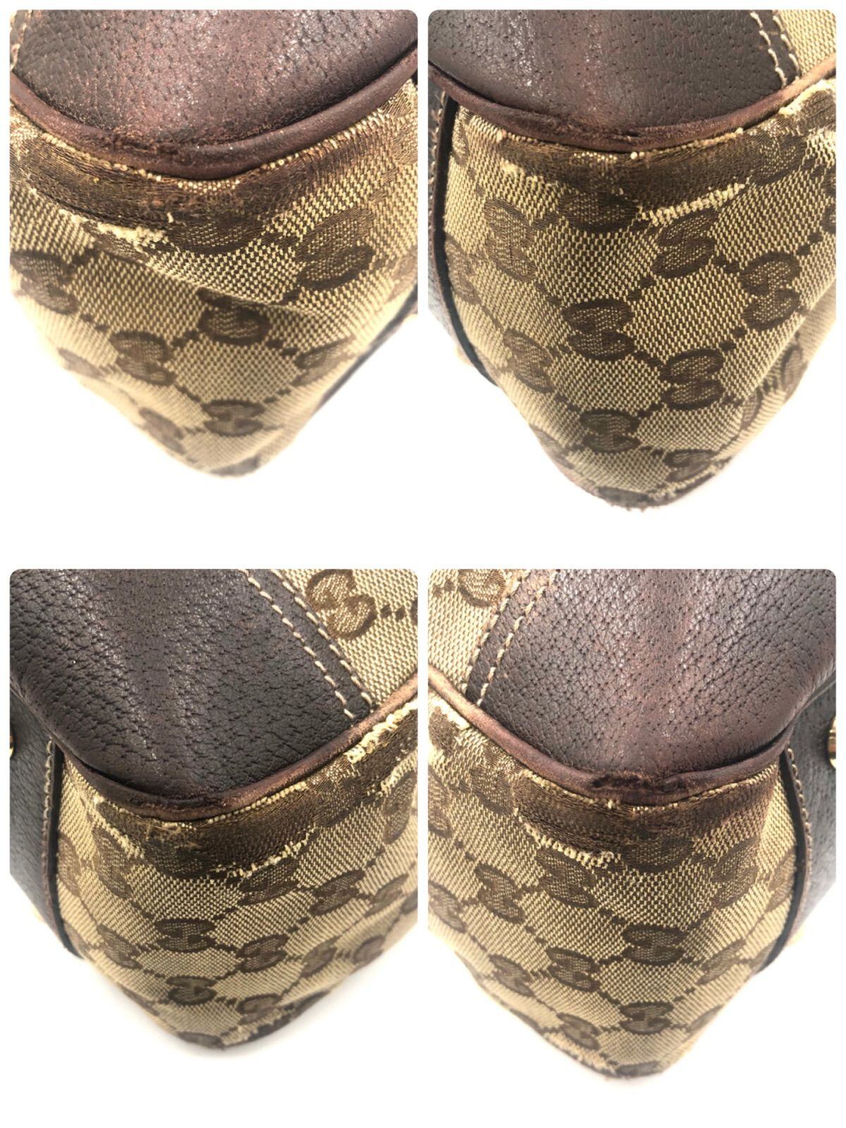 GUCCI グッチ GGキャンバス×レザー シェリーライン トートバッグ ブラウン系 リボン イタリア製 刻印あり