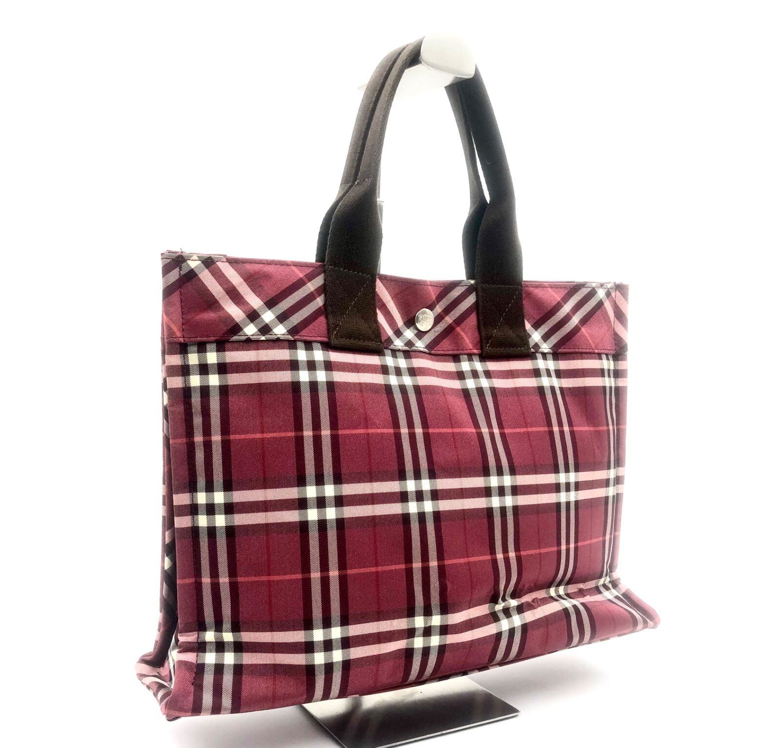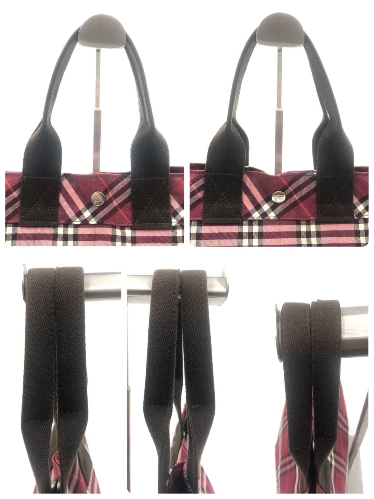 BURBERRY BLUE LABEL バーバリーブルーレーベル ノバチェック トートバッグ ナイロンキャンバス ボルドー系 日本製 三陽商会