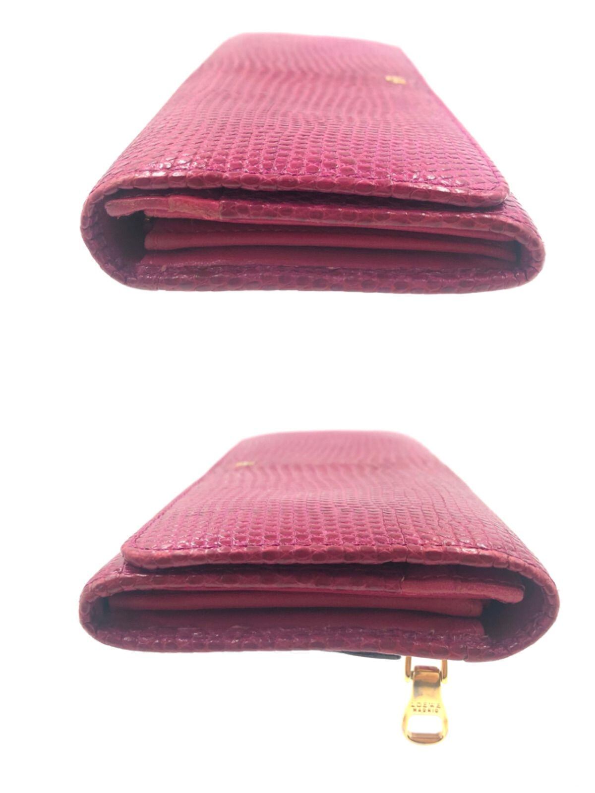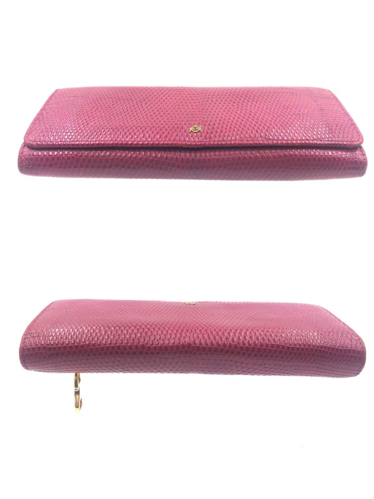 ■希少■LOEWE ロエベ アナグラム 長財布 リザード レザー 本革 スペイン製 刻印あり ピンク ゴールド金具 保存袋 箱 紙カード付き レディース