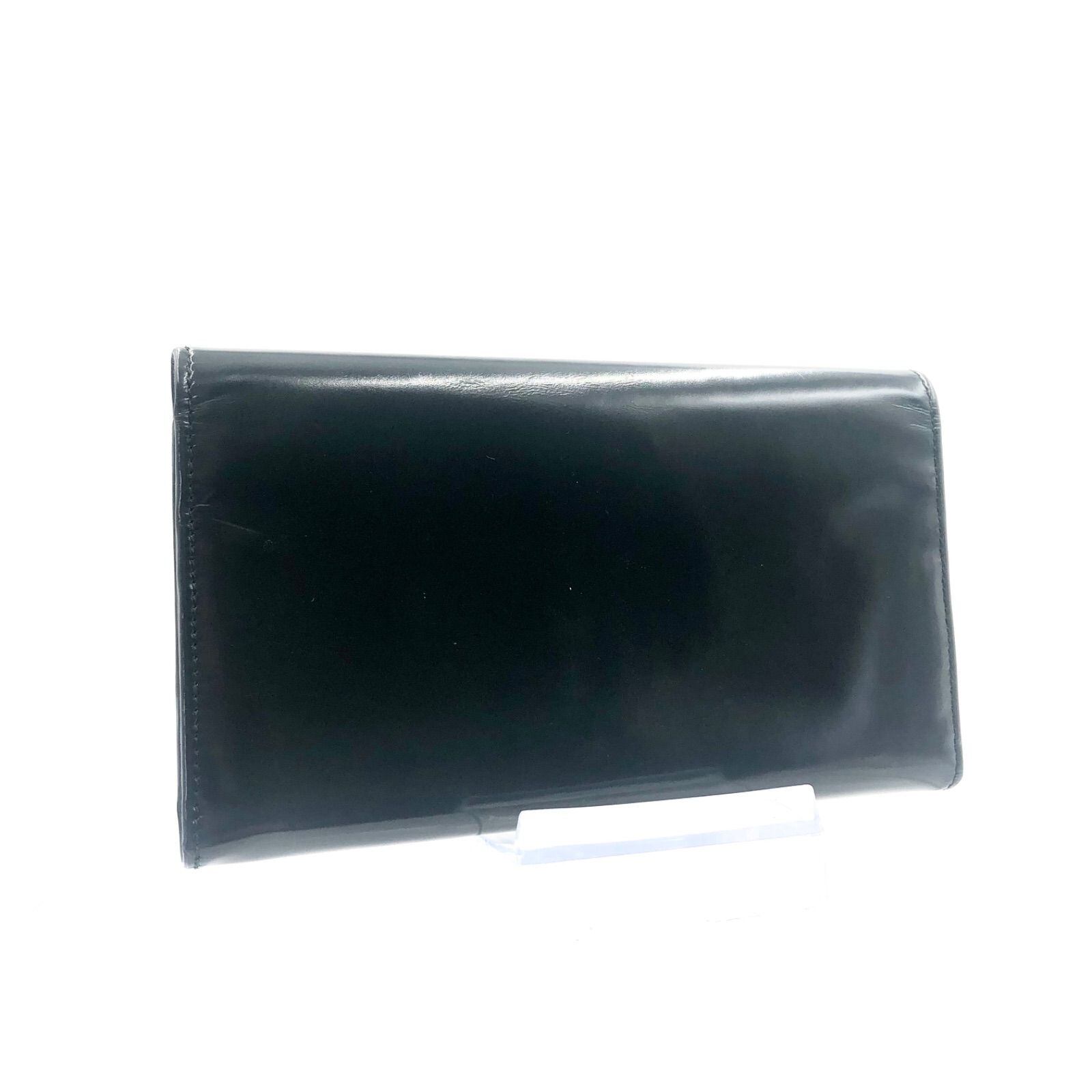 ■極美品■GUCCI グッチ ロゴ型押し 長財布 三つ折り レザー 本革 ダークグリーン(ブラックに近い) シルバー金具 イタリア製 刻印あり035・3314・2032 箱付き