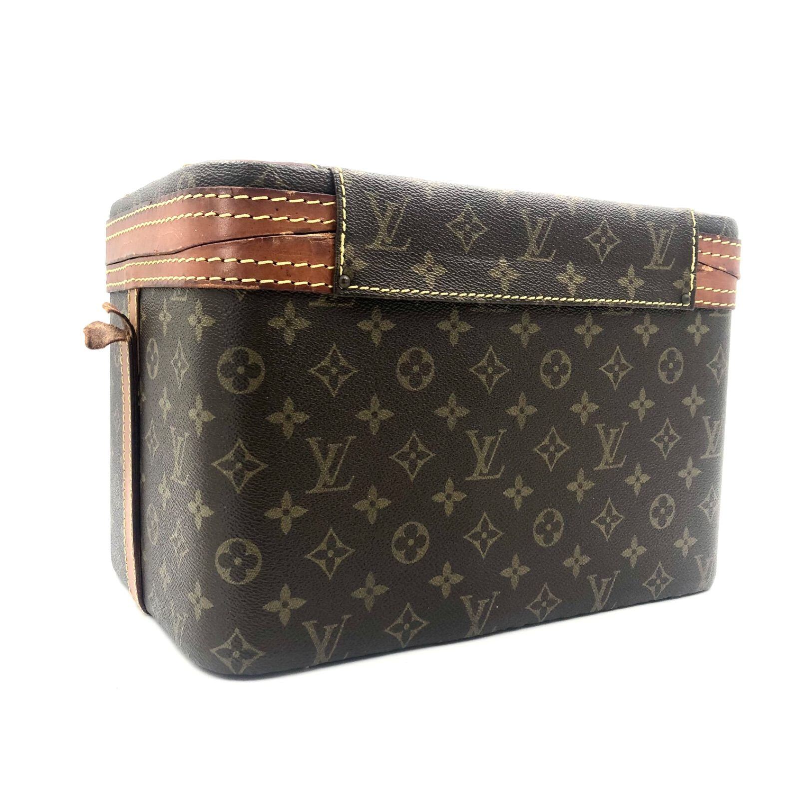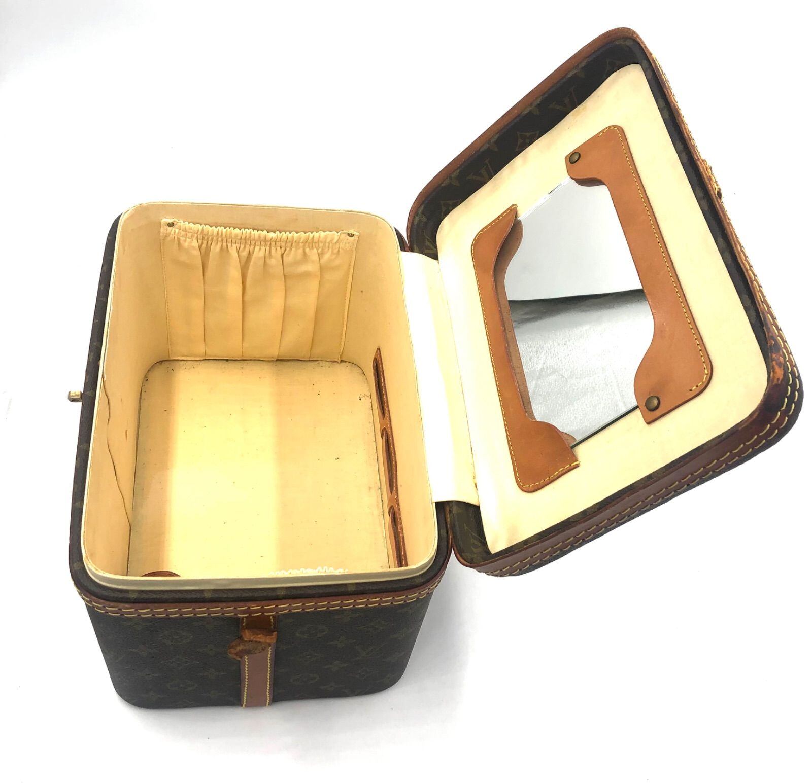 ■鑑定済み■超希少1970年代ヴィンテージ■LOUIS VUITTON ルイヴィトン モノグラム メイクボックス 大型バニティ PVC×レザー フランス製 ブラウン ゴールド金具 ミラー 化粧道具箱 インテリア