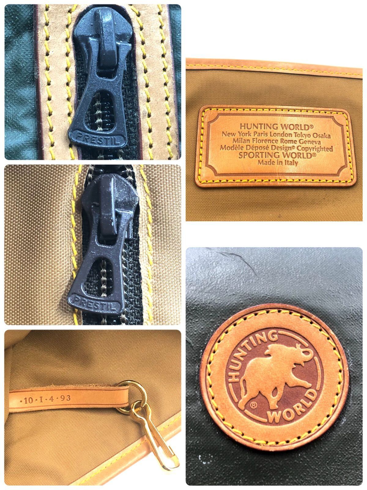 Hunting World ハンティングワールド バチュークロス×レザー メッセンジャーバッグ ショルダーバッグ ロゴサークル イタリア製 刻印あり グリーン×ライトブラウン 斜めがけ クロスボディ