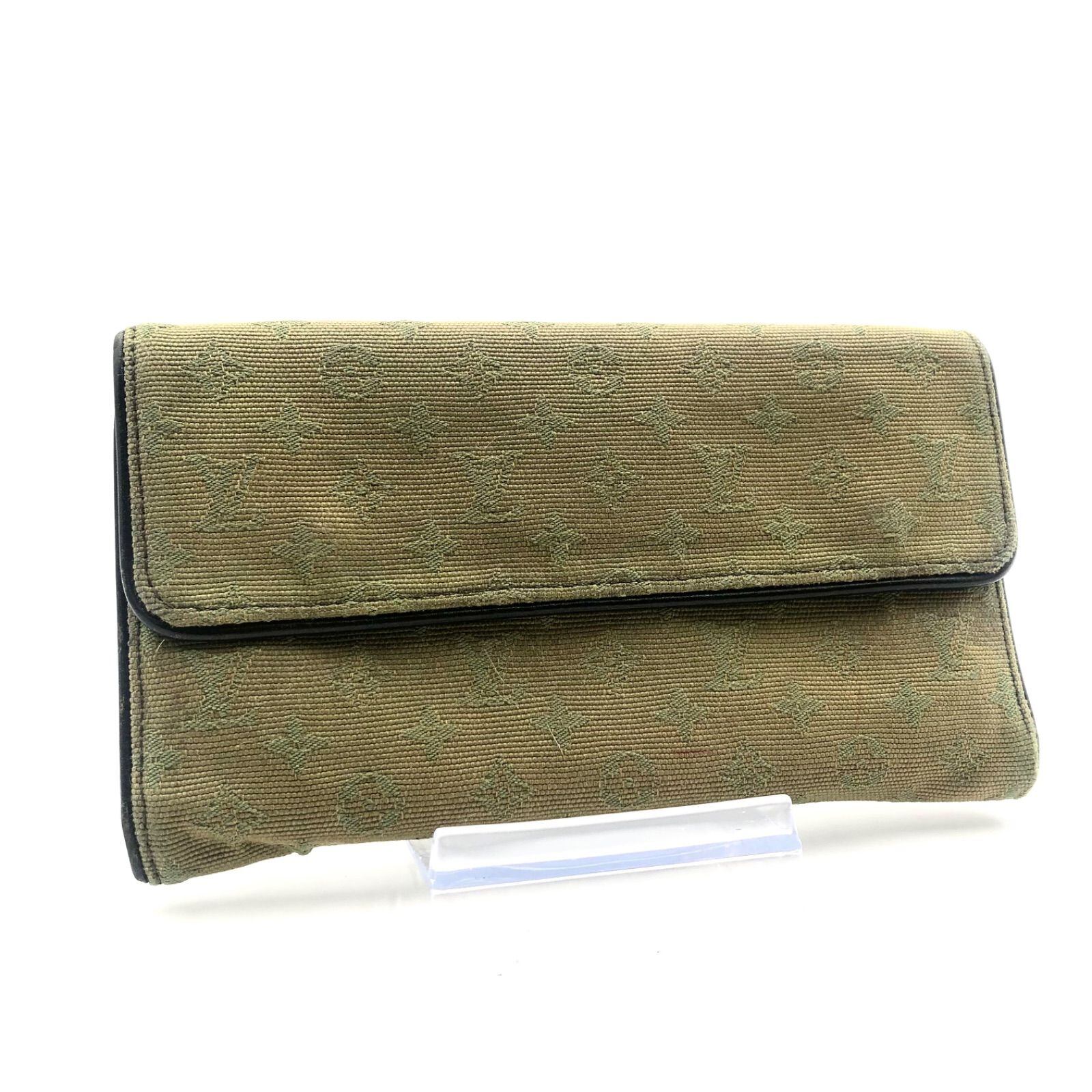 LOUIS VUITTON ルイヴィトン モノグラムミニ アーモンドグリーン ポルトトレゾール インターナショナル 三つ折り長財布 キャンバス×レザー ゴールド金具 スペイン製 刻印あり