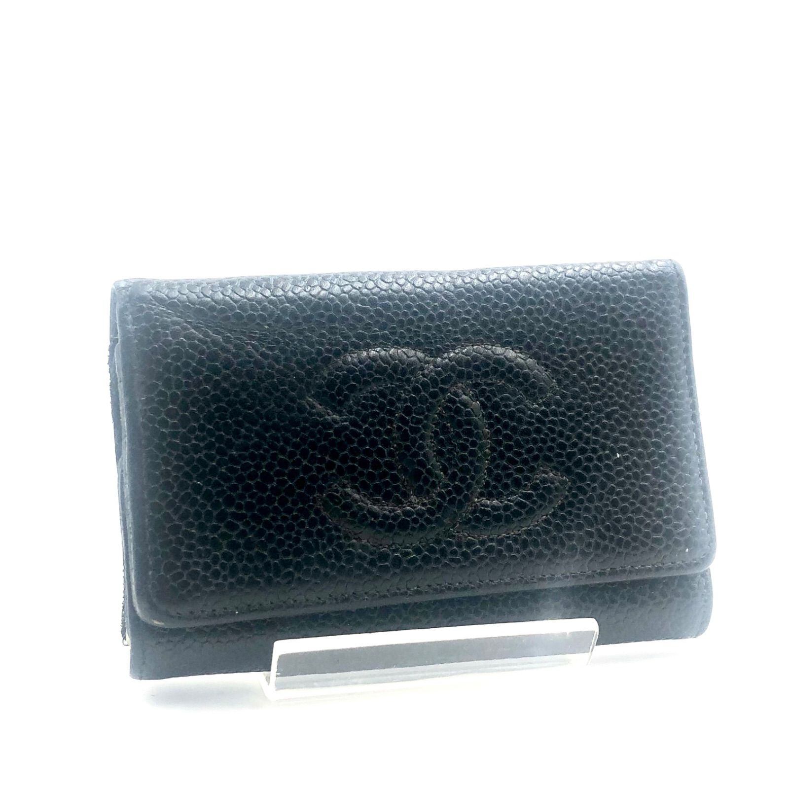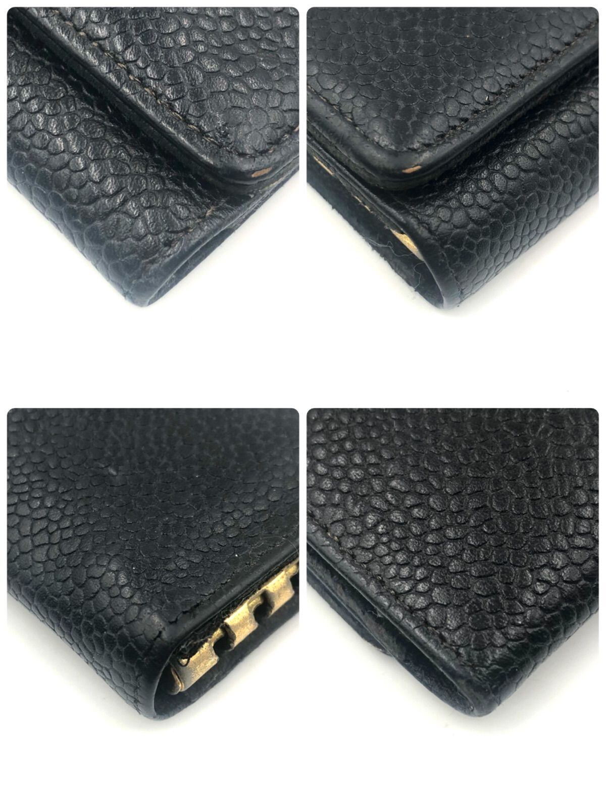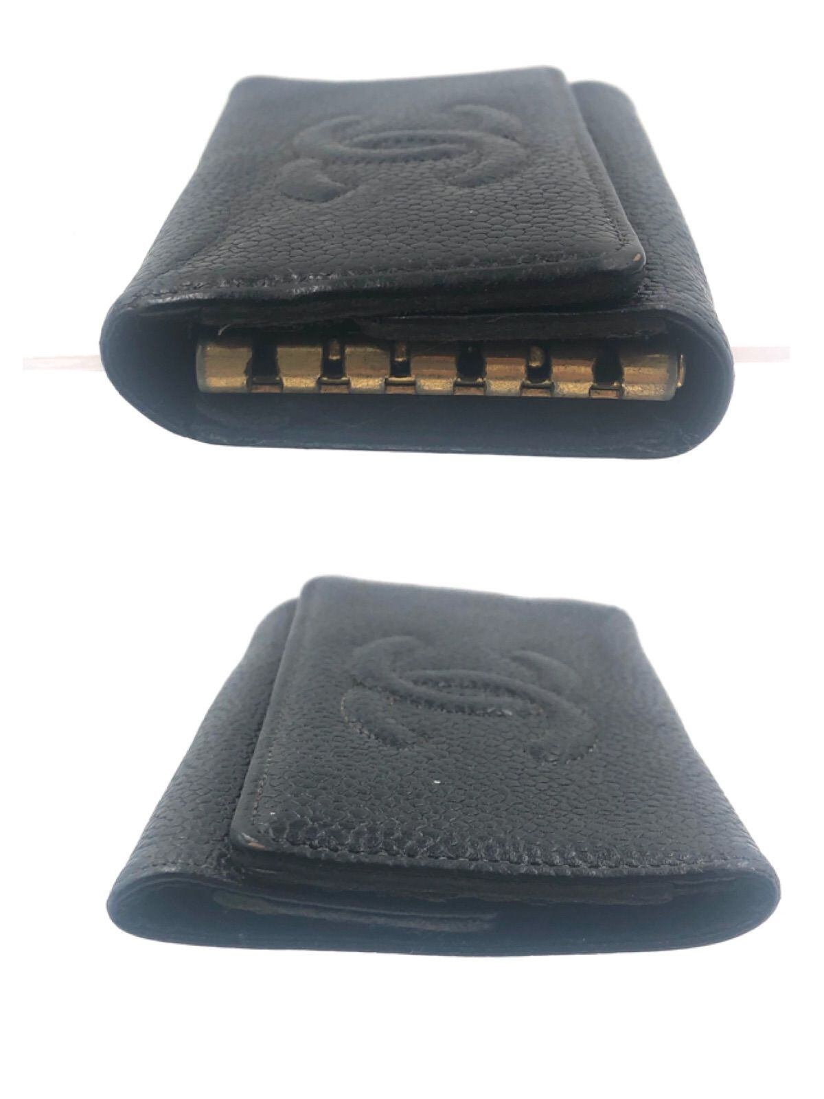 CHANEL シャネル キャビアスキン キーケース ココマーク レザー 本革 ブラック ゴールド金具 Wホック シリアルシール跡あり