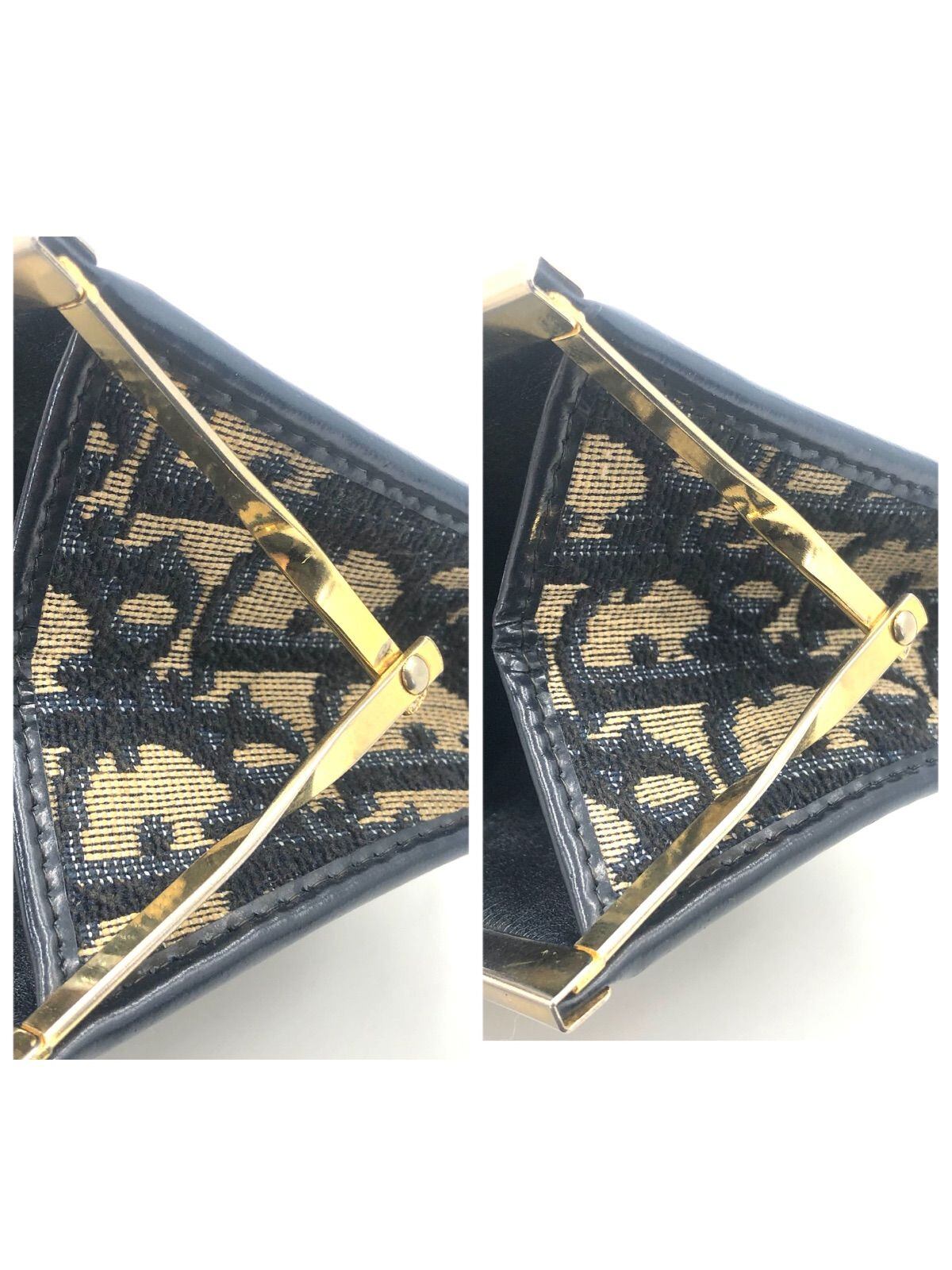■美品■Christian Dior クリスチャンディオール トロッター総柄 がま口コインケース 小銭入れ キャンバス×レザー ブラック×ベージュ ロゴプレート