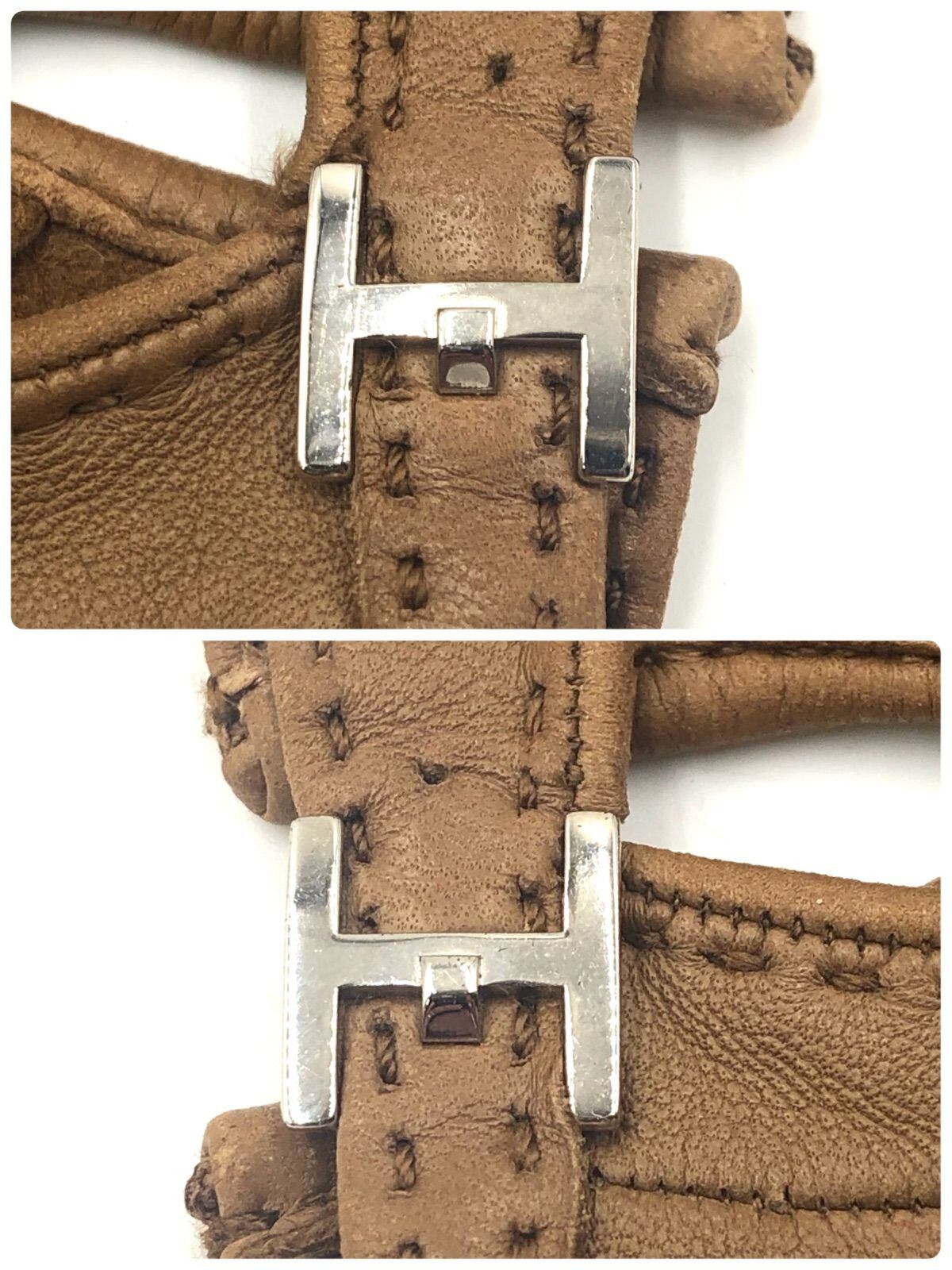 ■極美品■稀少■HERMES エルメス H金具 ドライビンググローブ レザーグローブ 革手袋 ブラウン系 シルバー金具 刻印あり<!-利用不可文字-!><!-利用不可文字-!>S レディース 箱付き