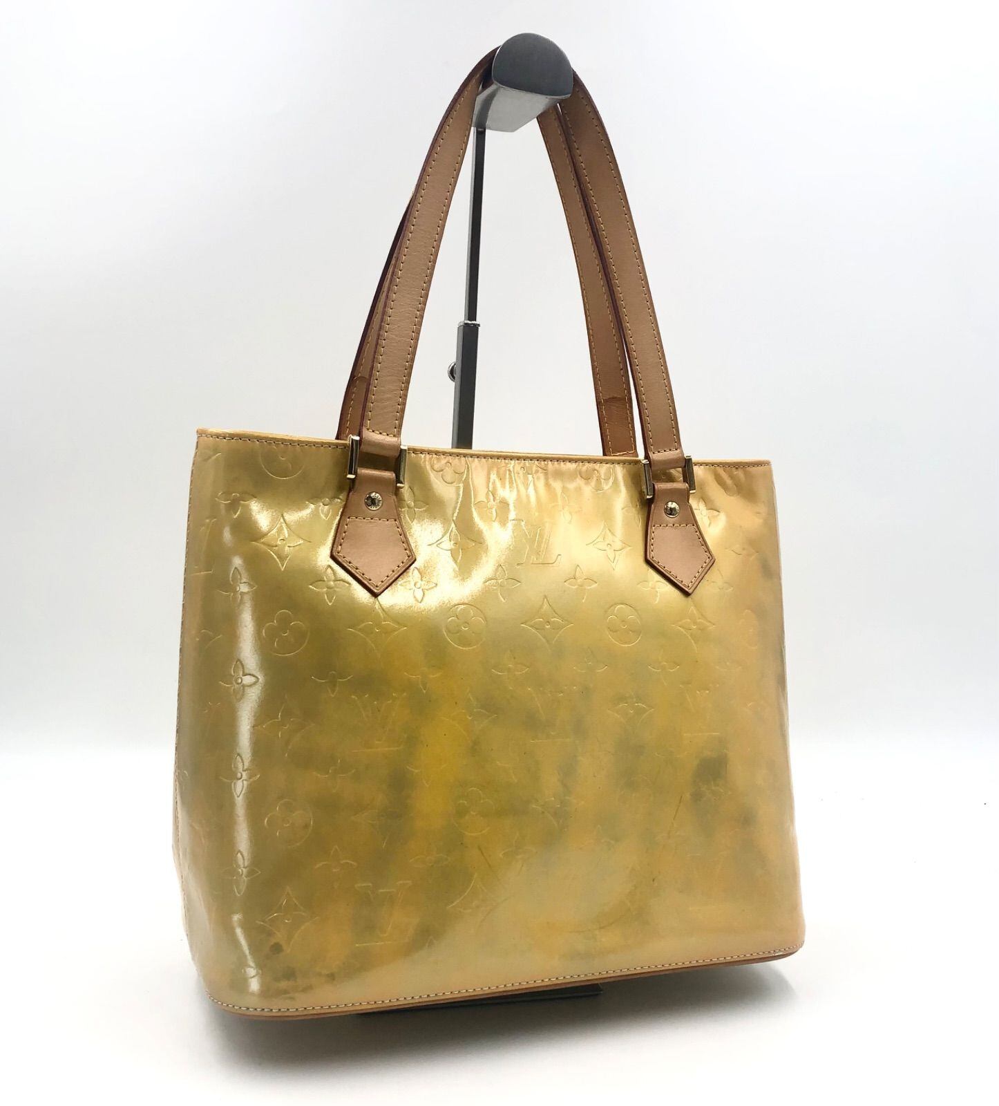 LOUIS VUITTON ルイヴィトン モノグラム ヴェルニ イエロー系 ヒューストン トートバッグ エナメル パテントレザー ゴールド系 フランス製 刻印あり