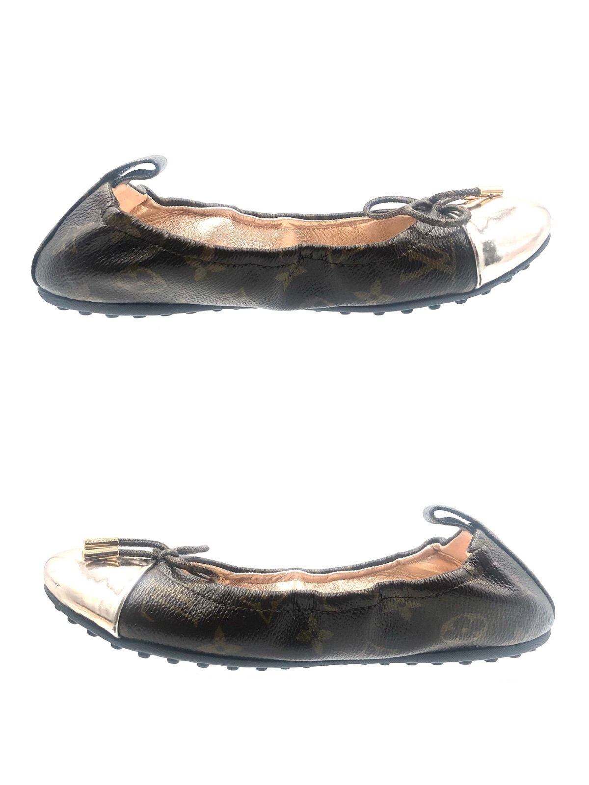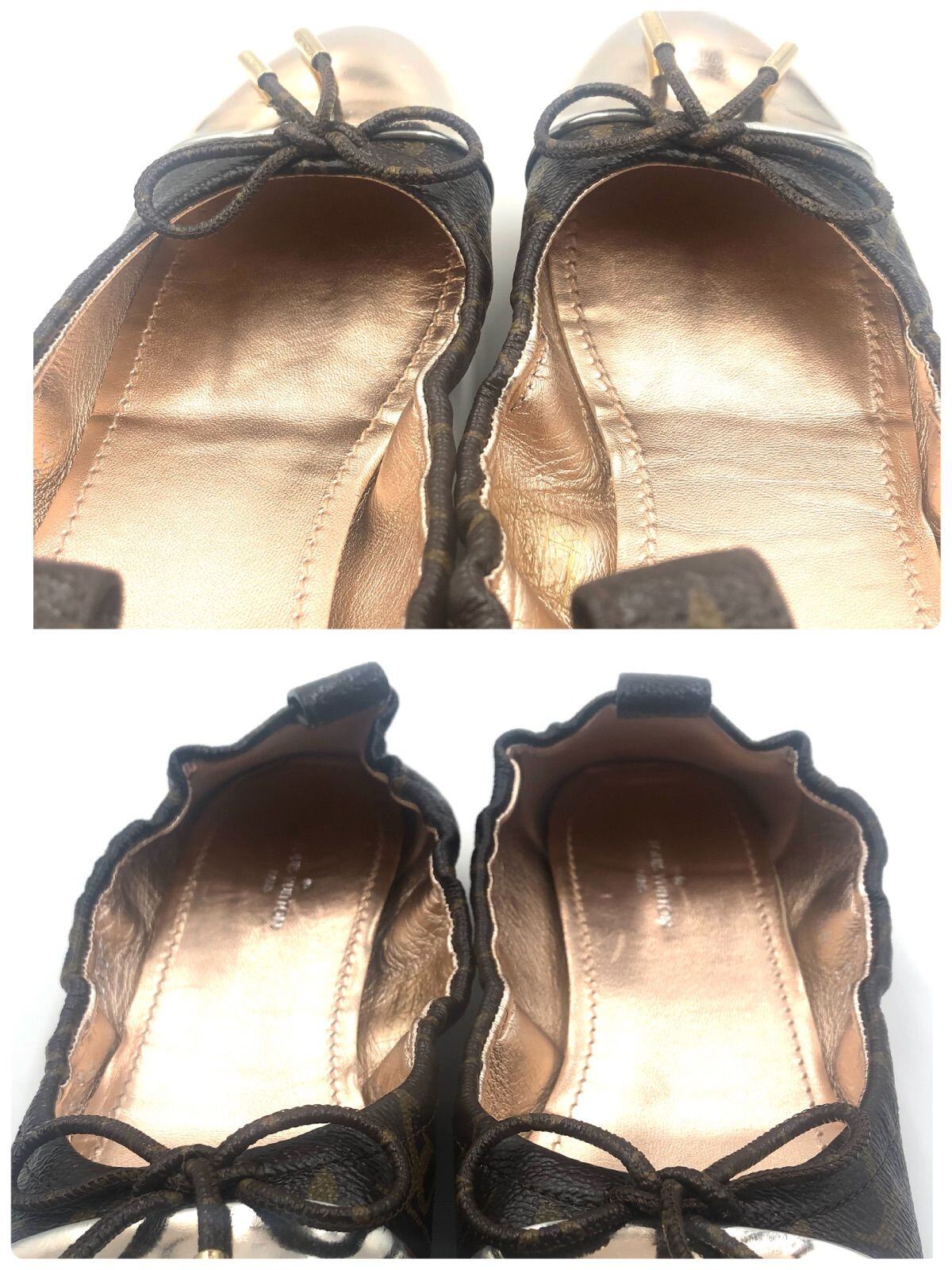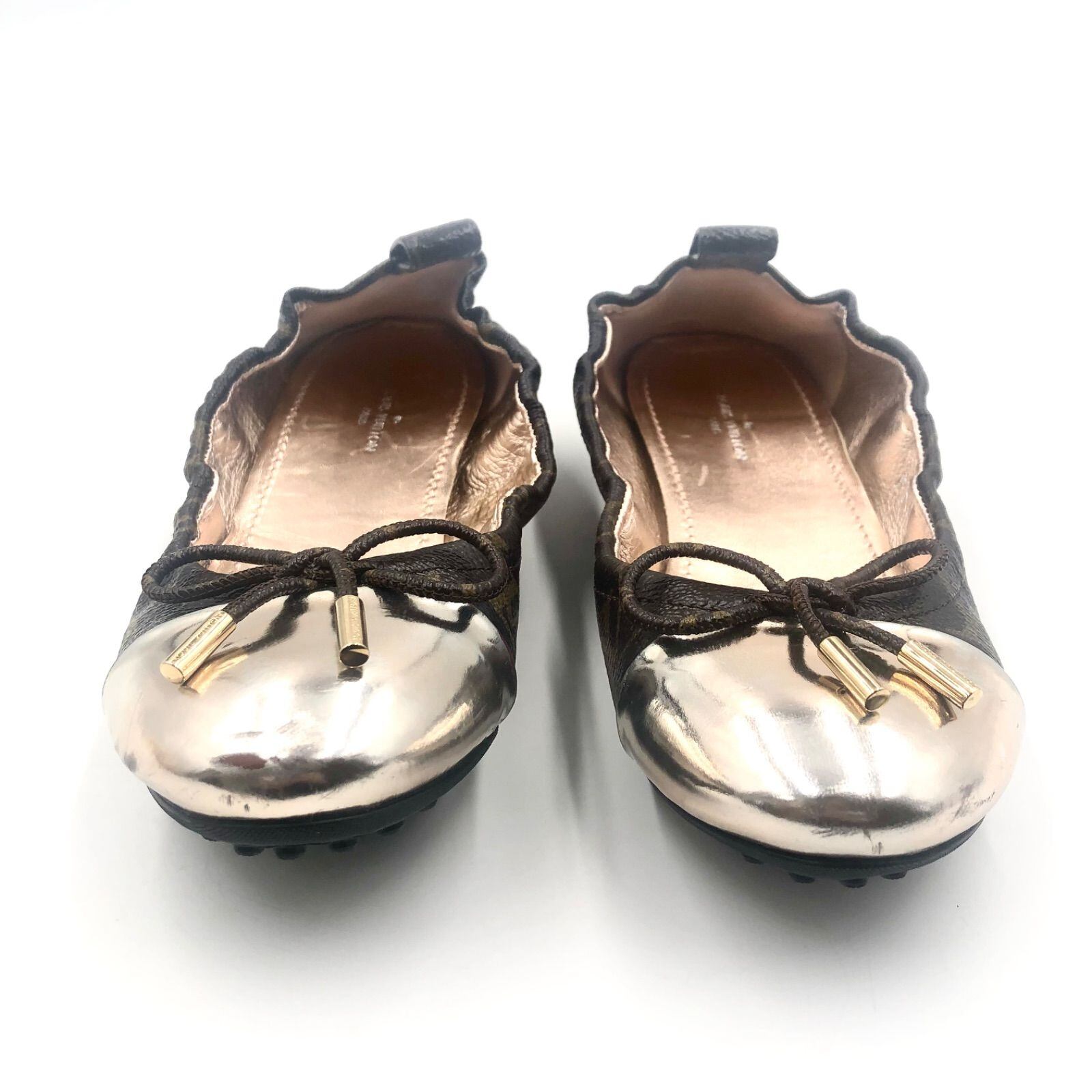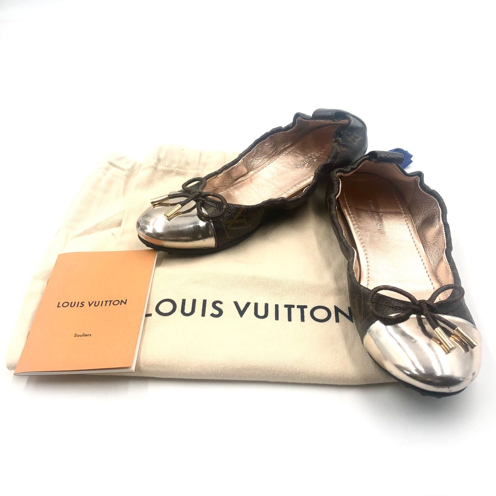 ■美品■LOUIS VUITTON ルイヴィトン モノグラム バレエシューズ フラットシューズ ブラウン×シャンパンゴールド PVC×レザー イタリア製 刻印あり 保存袋 冊子 サイズ36(23cm程度) レディース