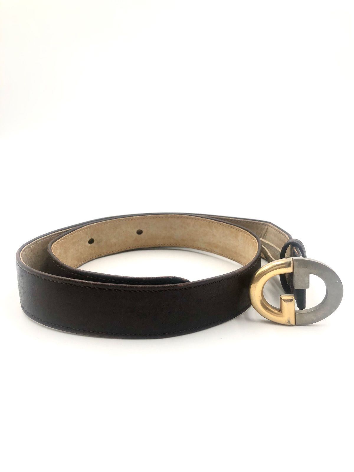 GUCCI グッチ ロゴバックル ベルト レザー 本革 ダークブラウン インターロッキングG ウエスト60~68cm レディース