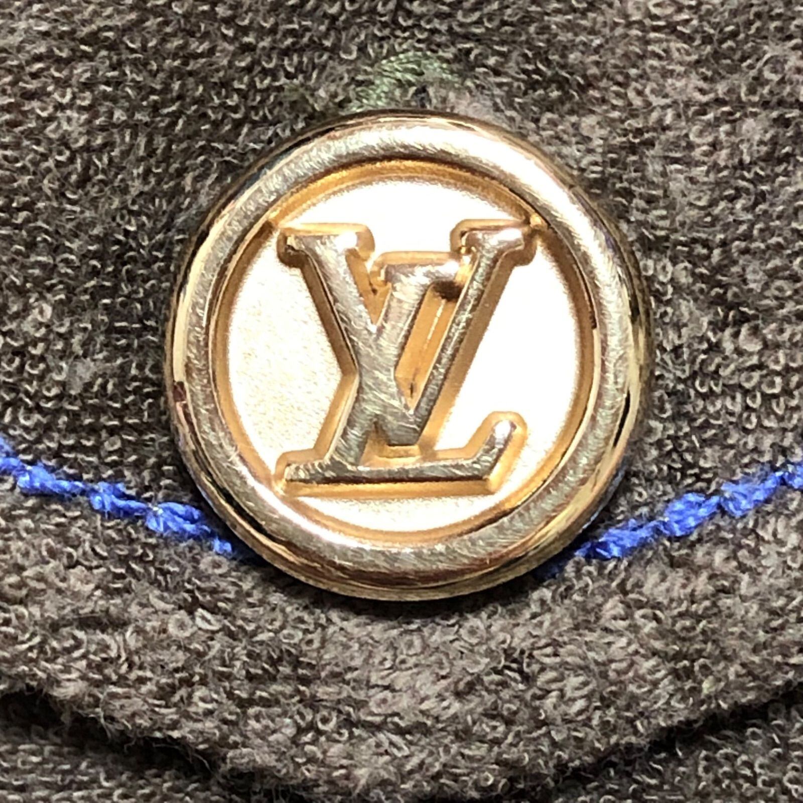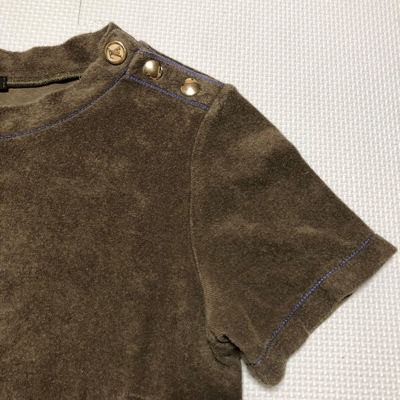 ■稀少■LOUIS VUITTON ルイヴィトン パイル地風 半袖チュニックワンピース LVロゴ金ボタン sizeM フランス製 ブラウン系 レディース