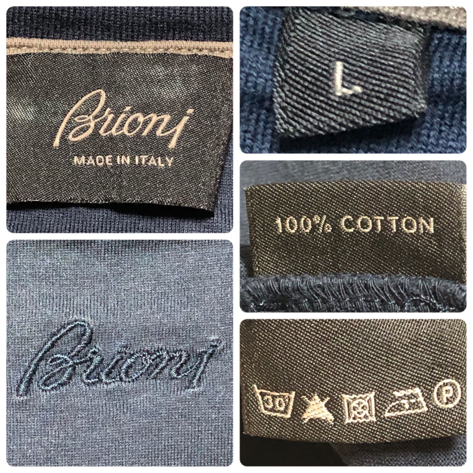 ■美品■Brioni ブリオーニ 半袖Tシャツ 後ろ首下ワンポイント刺しゅうロゴ 無地ネイビー sizeL イタリア製 メンズ クラシコイタリア