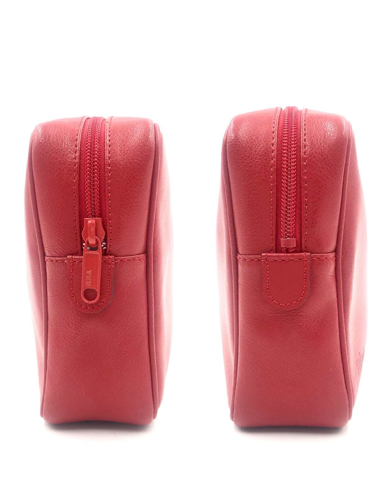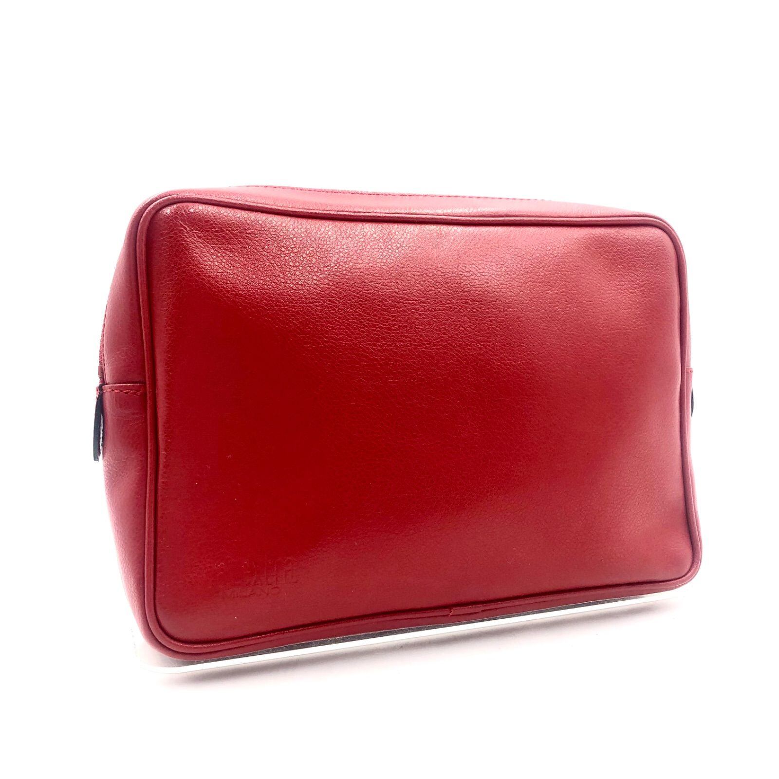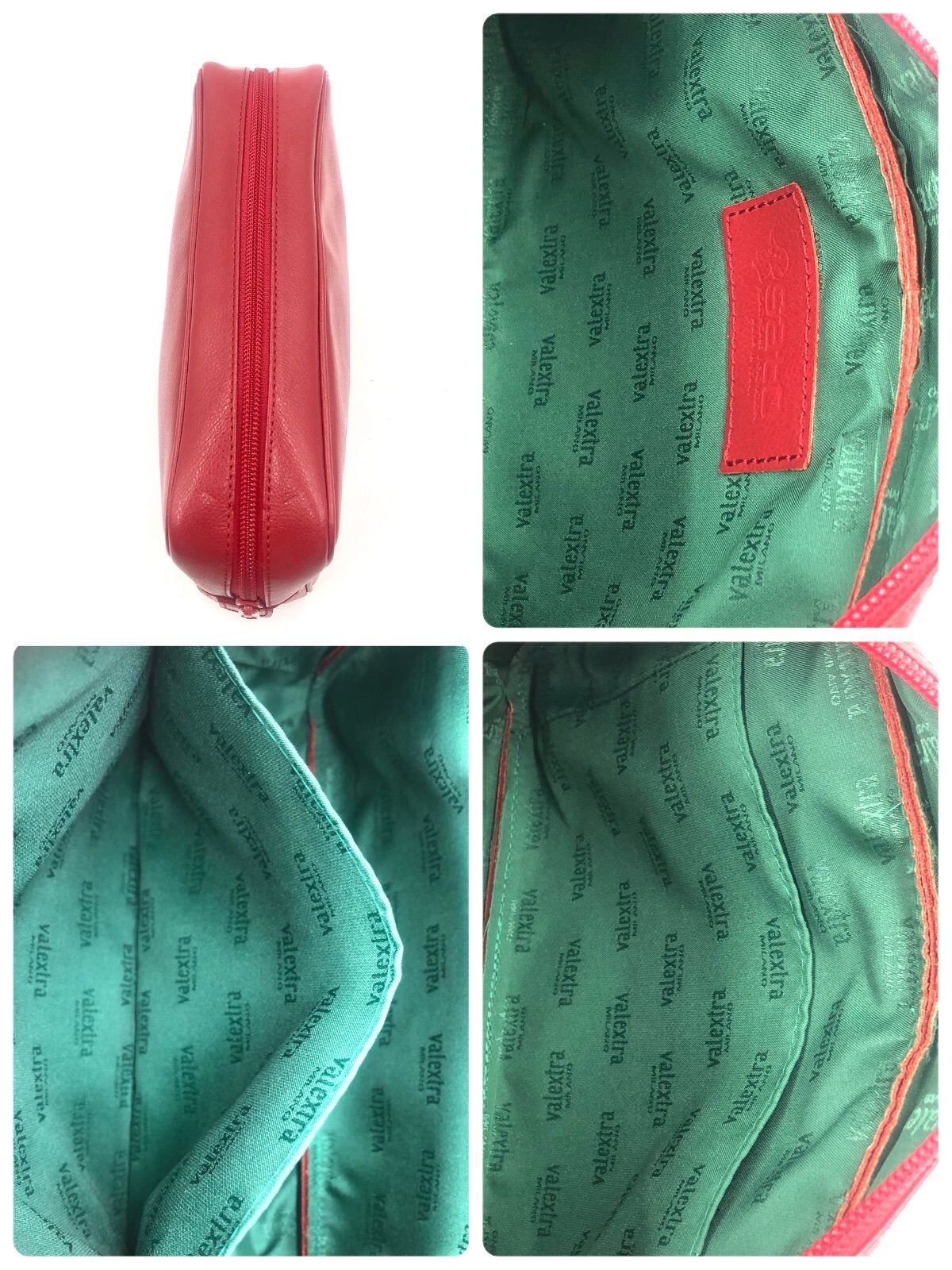 ■未使用同然■稀少■Sato×Valextra 佐藤製薬×ヴァレクストラ コラボクラッチバッグ セカンドバッグ ポーチ ロゴ型押し レッド 内側グリーン(ロゴ総柄) レザー イタリア製
