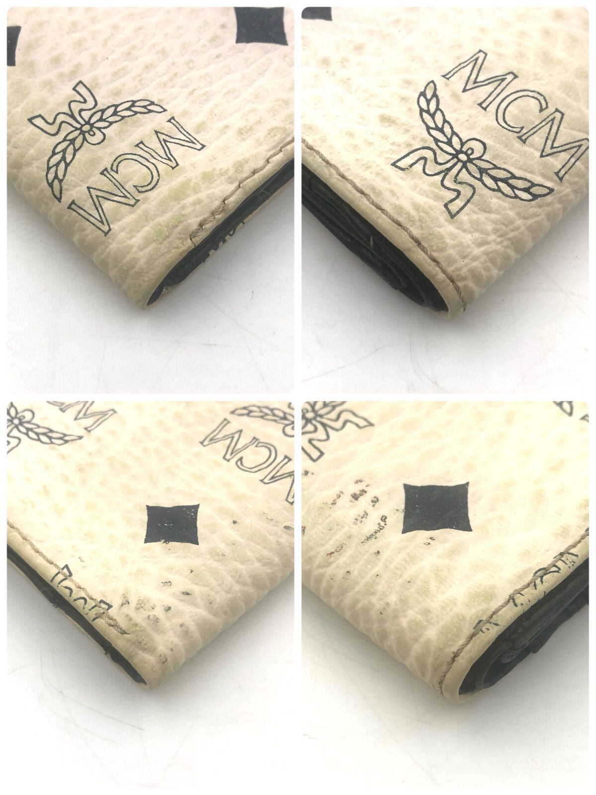 ■ドイツ時代ヴィンテージ■MCM エムシーエム ヴィセトス総柄 二つ折り財布 ホワイト系アイボリー レザー ドイツ製