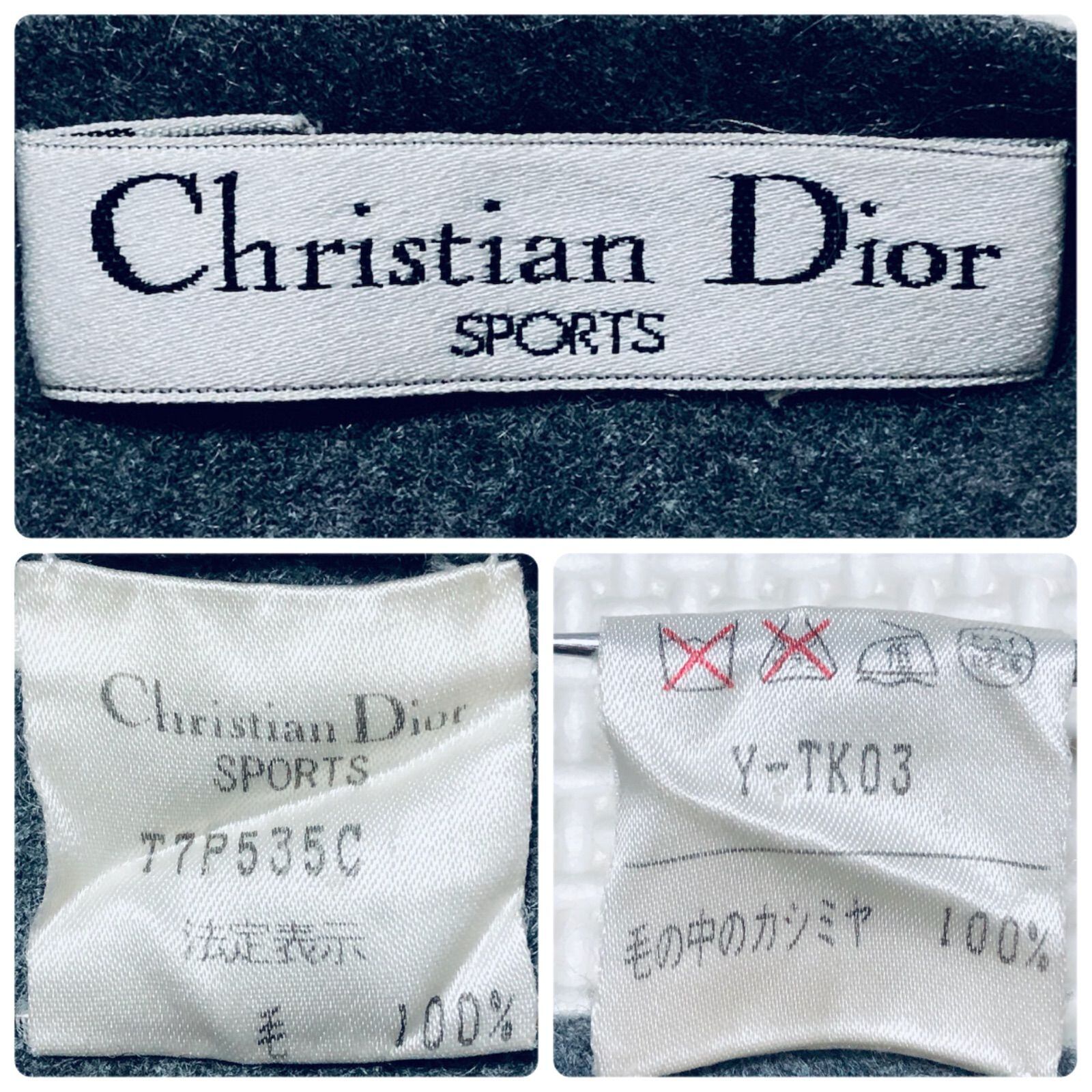 ■極美品■稀少カシミヤ100%■Christian Dior SPORTS クリスチャンディオールスポーツ カシミヤロングストール 三角ストール 100×200cm ワンポイント刺繍CDロゴ フリンジ グレー Y-TK03
